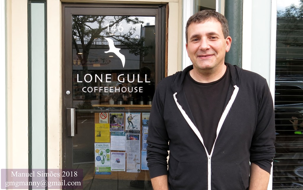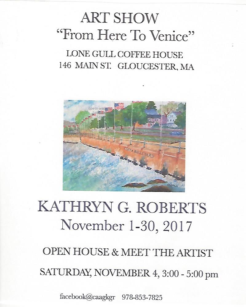 Lone Gull Coffeeshop 146 Main Street, Gloucester, MA, stands out with local art. Two dynamite mini solo shows are currently on view: