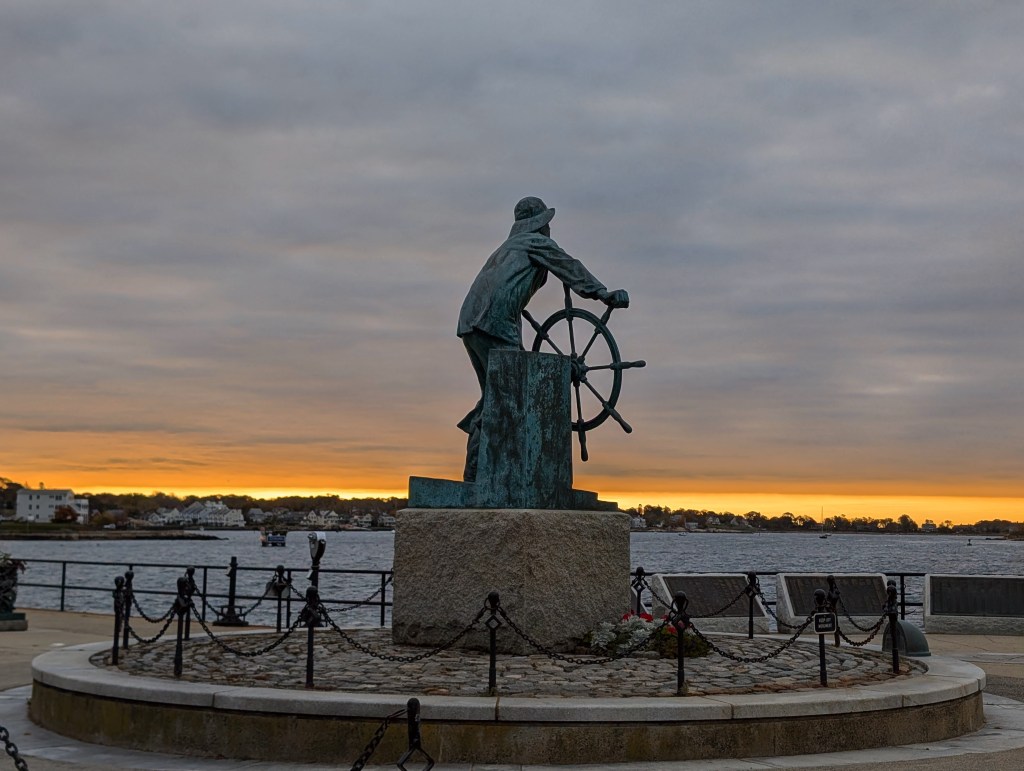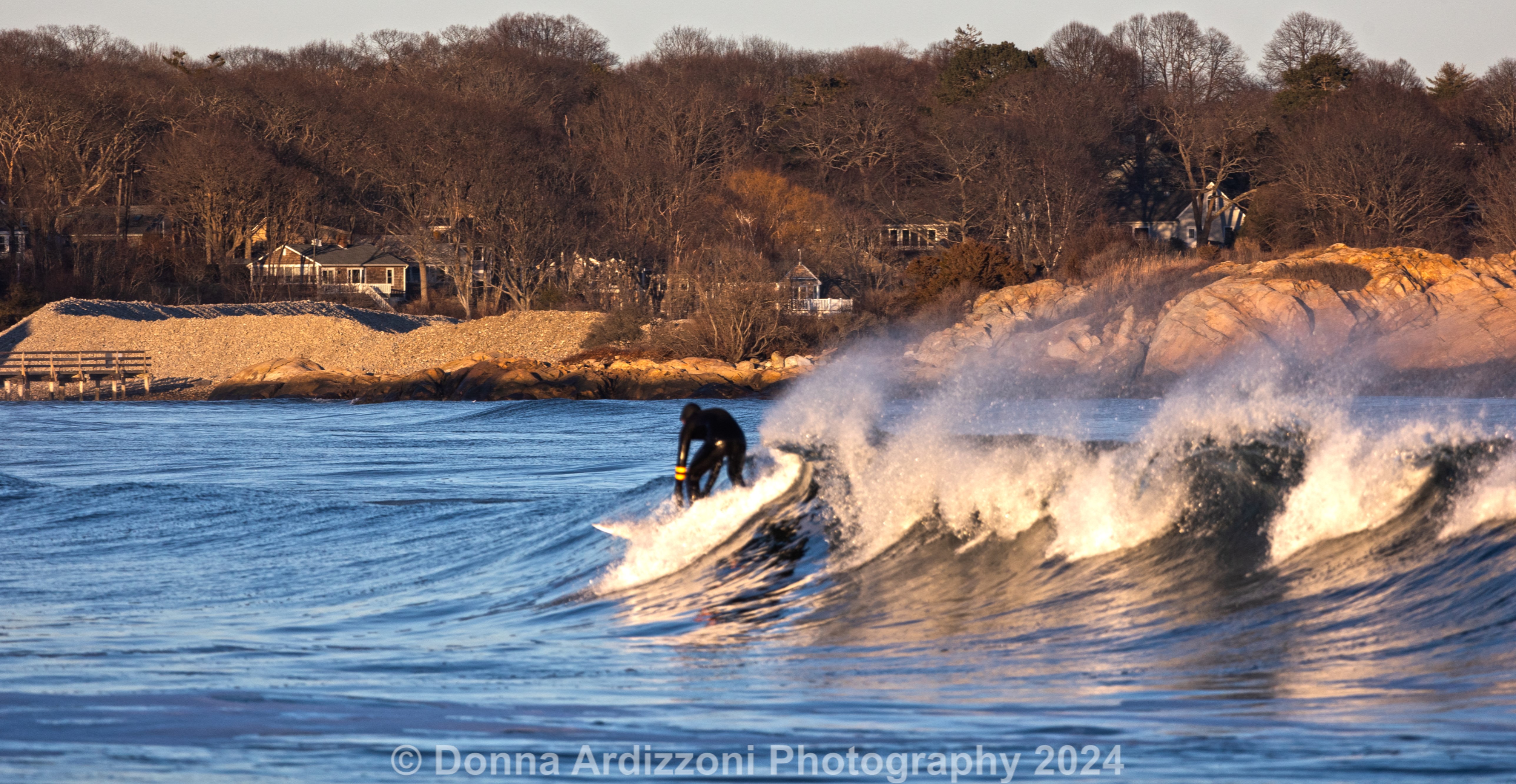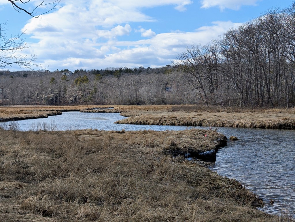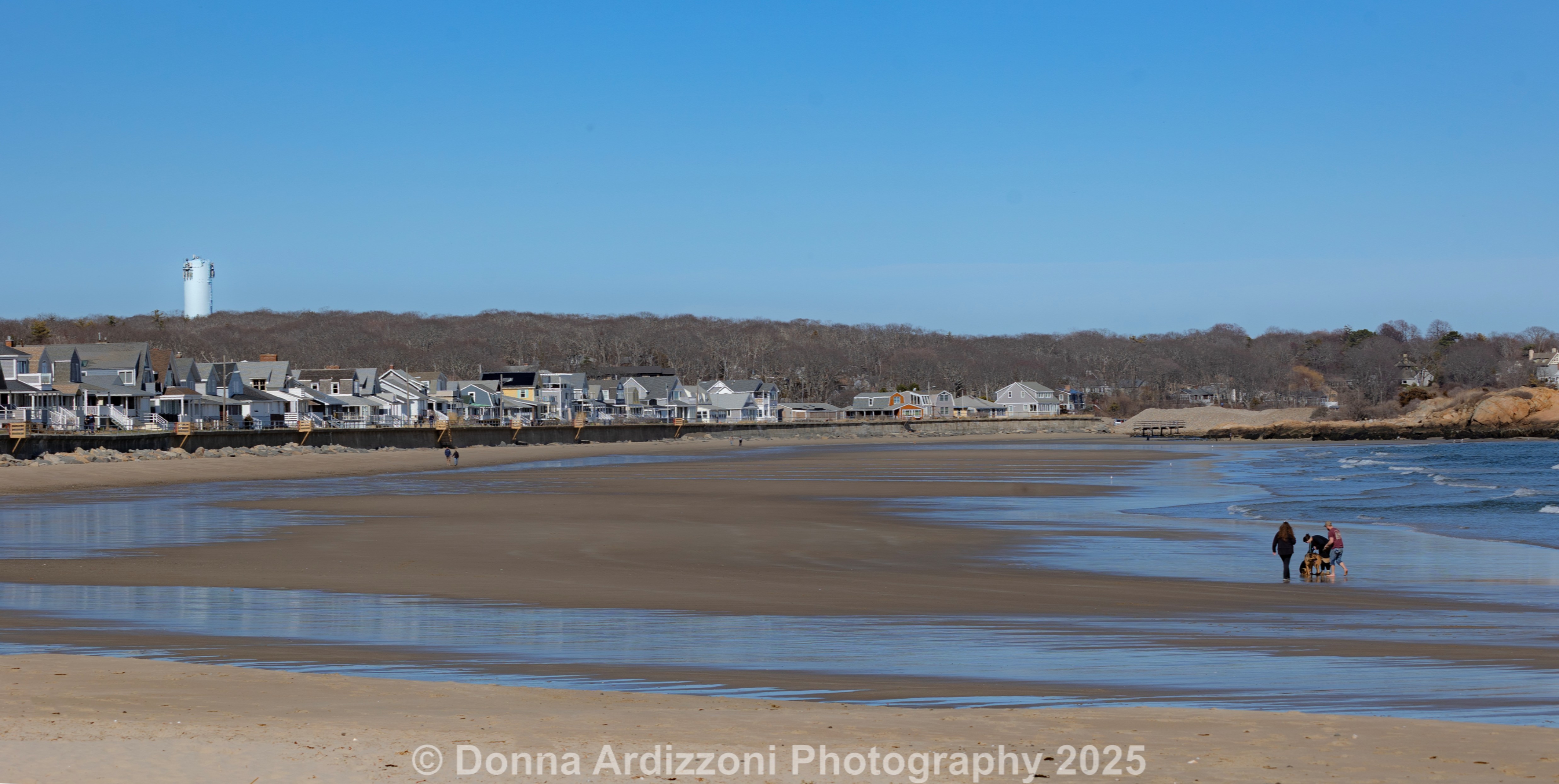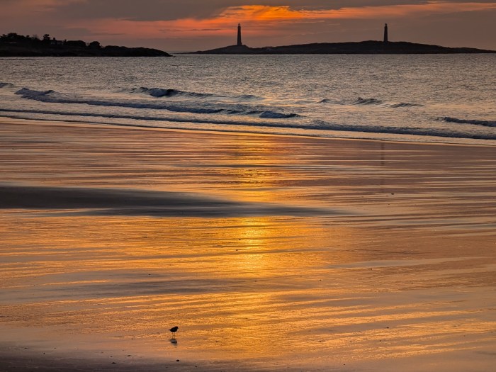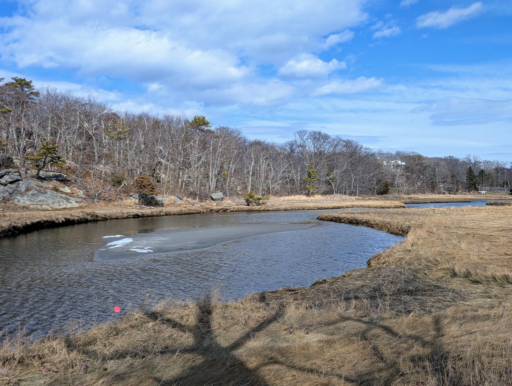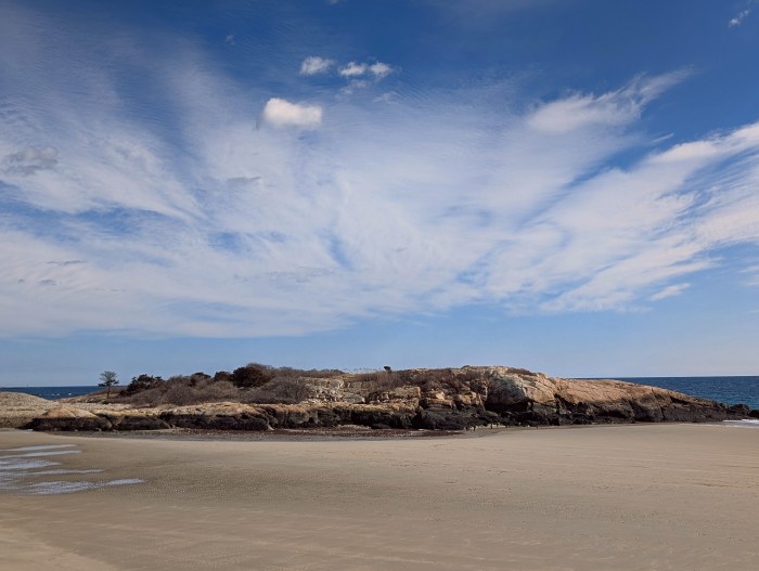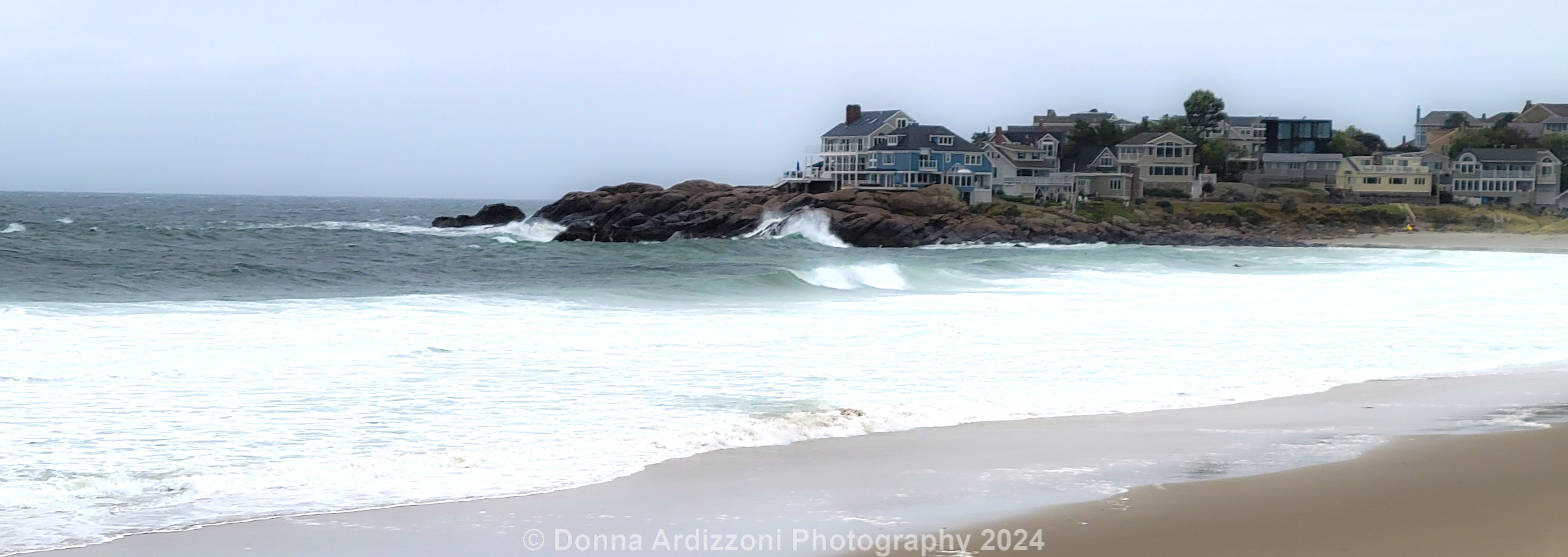 photo caption: 3/10/2024 at about high tide, views from Gloucester and Rockport, Long Beach, Twin Lights. Before the sun came out, the wind was strong enough this morning to move a portapotty off site 100′ down a street. Later, when the sun broke, waves in the surf matched up with a cloud filled blue sky.