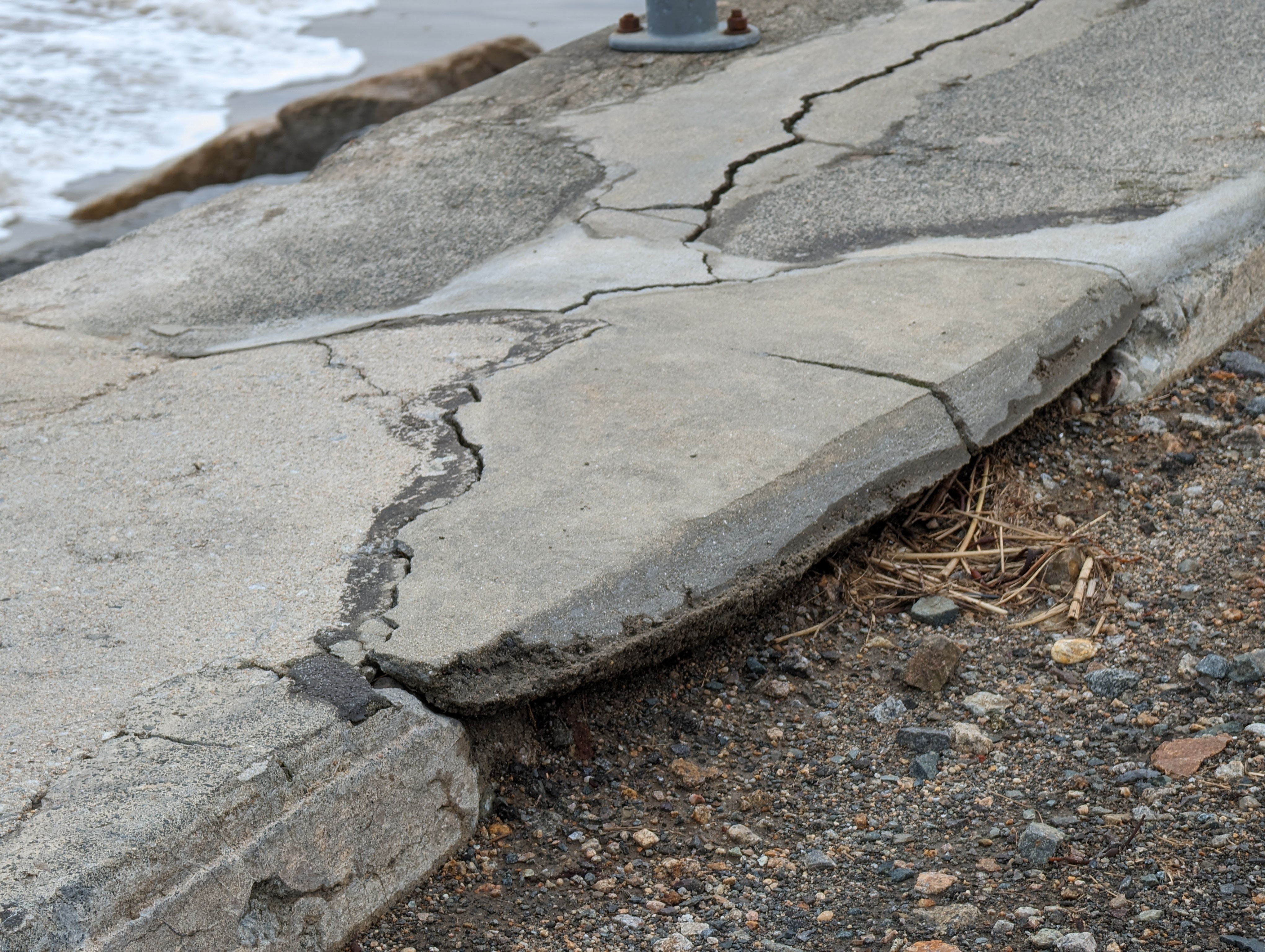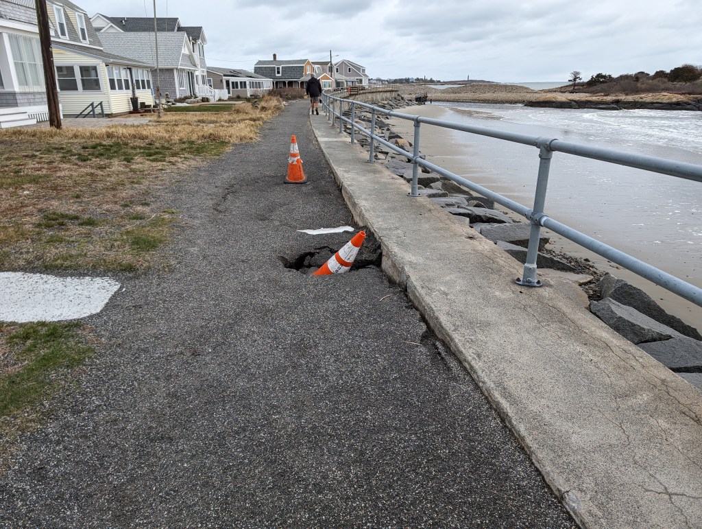 Photo series journaling the impact from the 2023-24 winter storms and tides. Much of the wall and walkway look great.