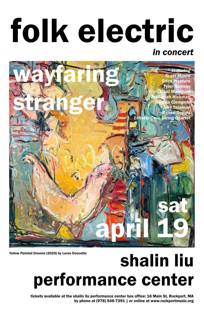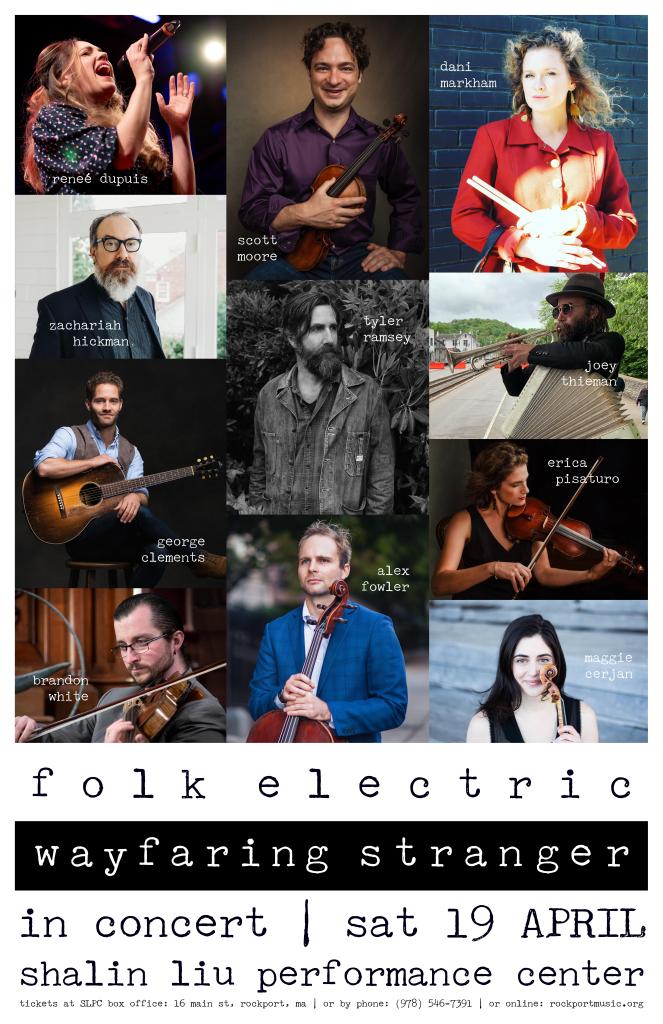 “The debut live performance of Folk Electric: Wayfaring Stranger, coming up on April 19 at the Shalin Liu Performance Center, features an 11-piece band, including myself, my husband Scott Moore, and other Cape Ann talents, as well as some very special out-of-town guests.”