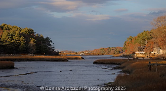 At dusk on Thursday, drove by Little River. The tide was low; the area was very quiet as the sun was setting.