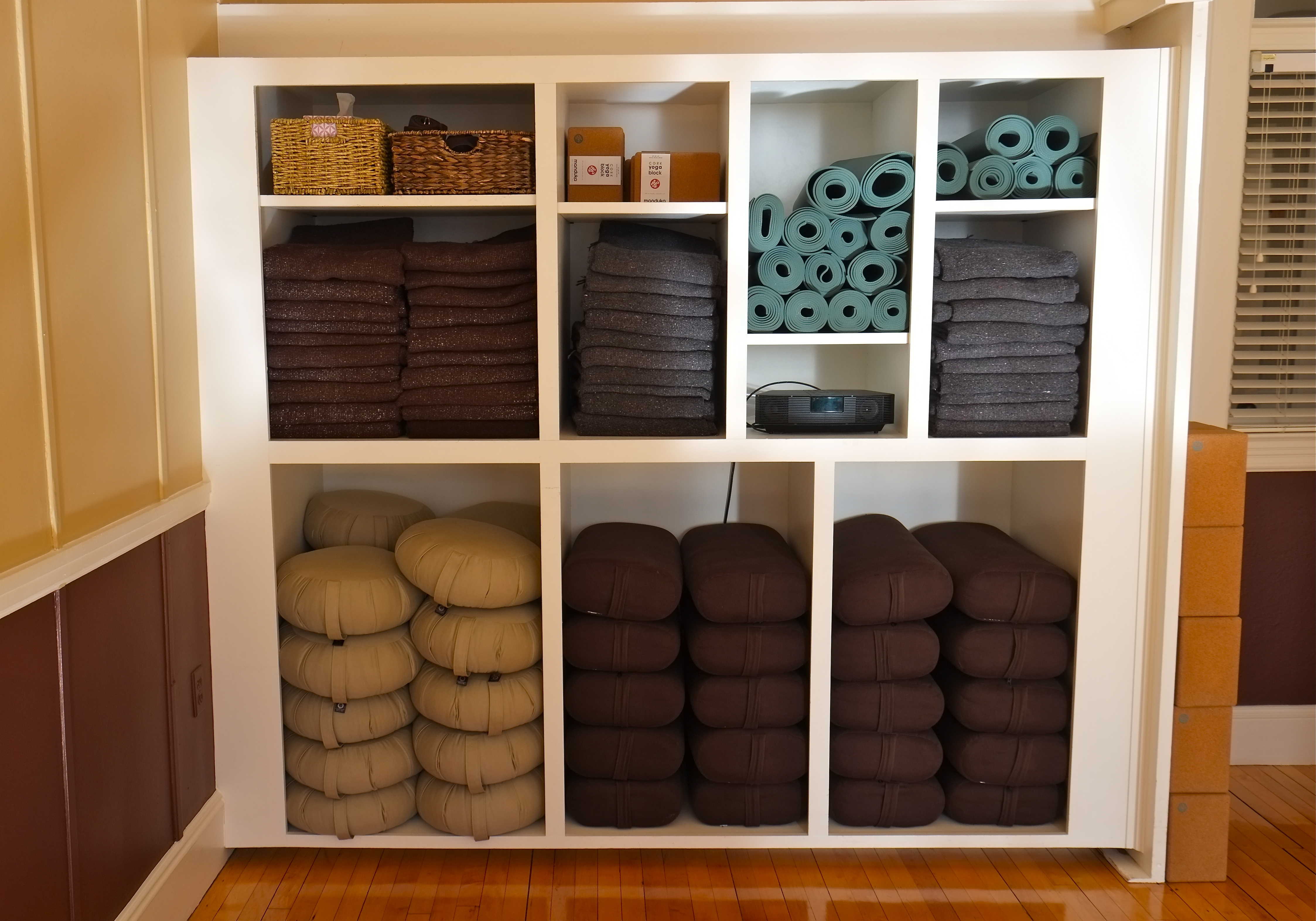 A class card from Harbor Yoga that can be used anytime over a six month period would be a much appreciated gift for the yogi in your life and is easily purchased online. For more information about class cards and rates, click here.Harbor Yoga Gloucester MA 01930Lyn’s super organized props department