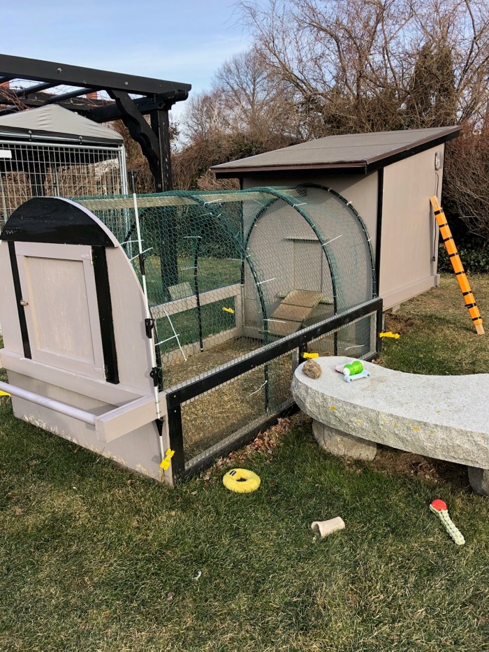 Today, the very awesome landscaper Patrick Low, owner of JPL Landscape Solutions spent the morning modifying and attaching the (former) dog run to the chicken coop and securing the entire structure from predators such as coyotes and racoons. Pat, Joel, and Skip have very generously donated their time and services to creating the winter swan sanctuary.