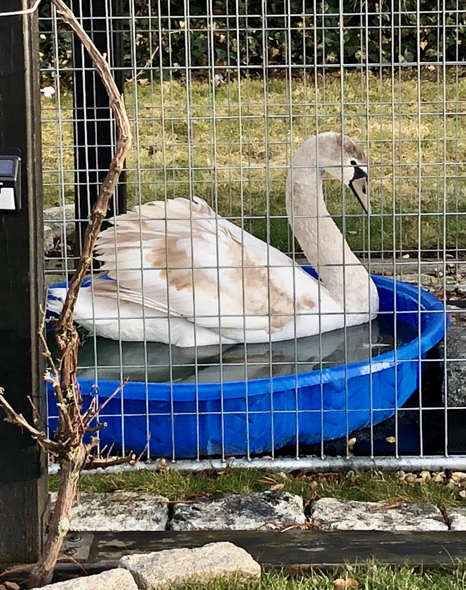 Lyn set up a tub in the Young Swan’s winter home. It’s quite nice, and she loves it. Her first order of business was to wash her neck, and then she jumped in!