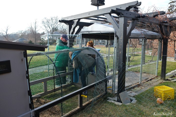 Then onto Eastern Point, with the great wildlife news of the weekend is that my friends Lyn and Dan released the Young Swan back to Niles Pond! You may recall that the Young Swan became frozen in the ice in early winter. Lyn has been kindly taking care of the immature swan all winter, housing him in a chicken coop remodeled (by carpenter Joel Munroe) just for a swan, replete with a heated pool.