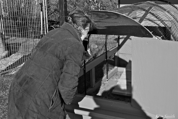 Eastern Point residents Lyn Fonzo and Dan Harris discovered the Young Swan frozen in the ice at Niles Pond early this morning. Dan reached into the water and scooped her up. She seemed relatively tame and did not try to bite Dan as we had imagined would happen. Dan and Lyn carried her to Lyn’s home, where she is currently living in one of Lyn’s chicken coops. Plans are underway to modify the chicken house to make it a bit more swan friendly. Joel Munroe, one of several of Mr. Swan’s caregivers, is also a carpenter and she is planning to help Lyn.