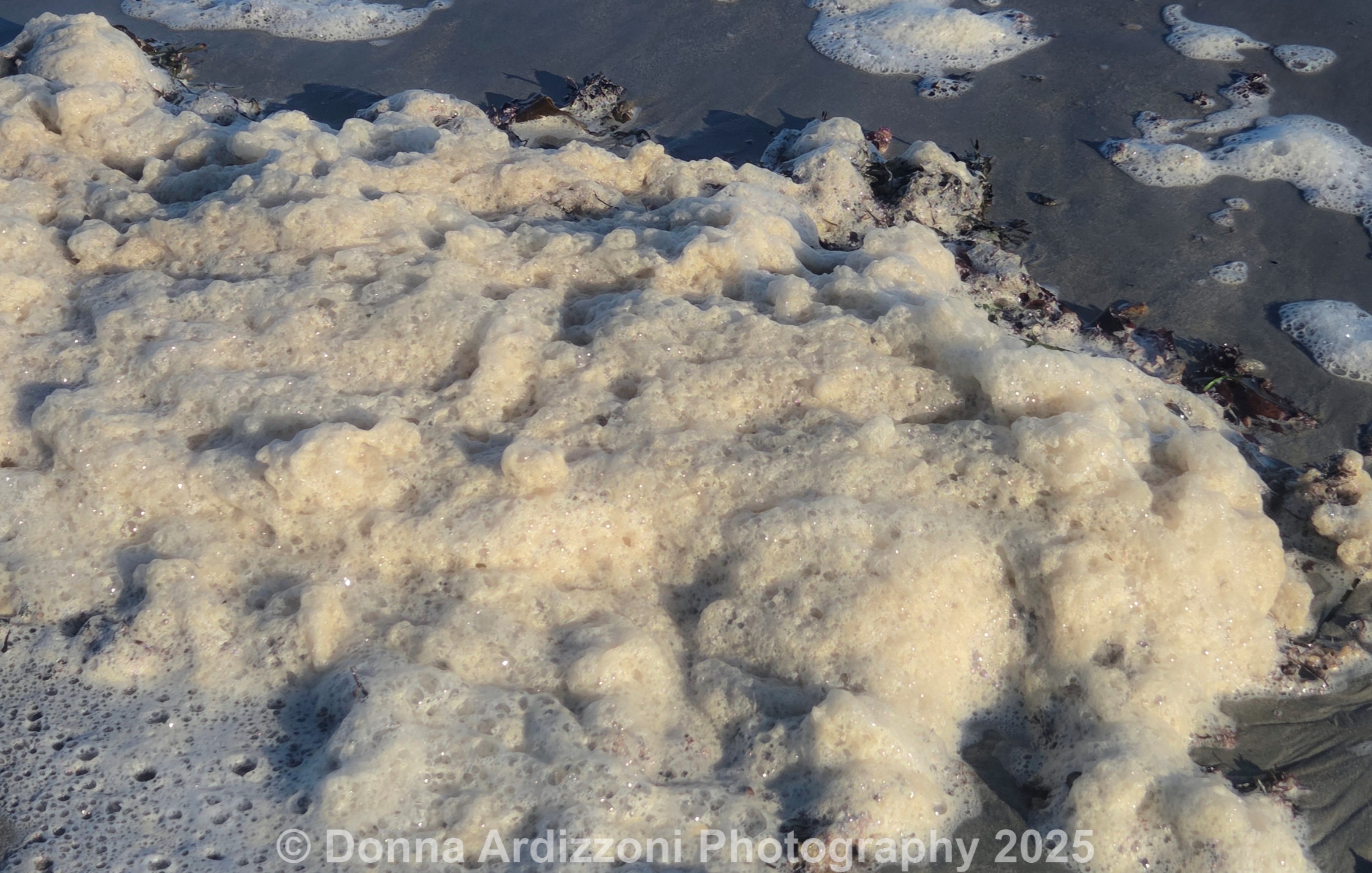 How does sea foam form? Like filling up a bubble bath or steaming a latte, sea foam forms when certain molecules in the water are mixed until they’re frothy. In the ocean, DECAYING MARINE LIFE releases organic molecules, including proteins and fats, into the water. Some proteins and fats can act as SURFACTANTS.