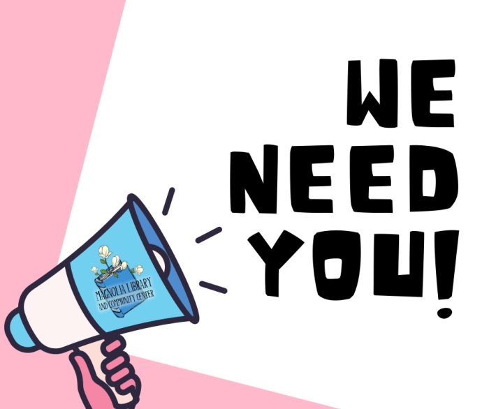 The Magnolia Library & Community Center needs your help! We are applying for a CPA Grant to replace windows, doors, the bulkhead, and do light repairs on our back steps. If you support us in this effort, please click the below link and fill out the short survey (30 seconds max of your time). Community support is very important in the grant process.