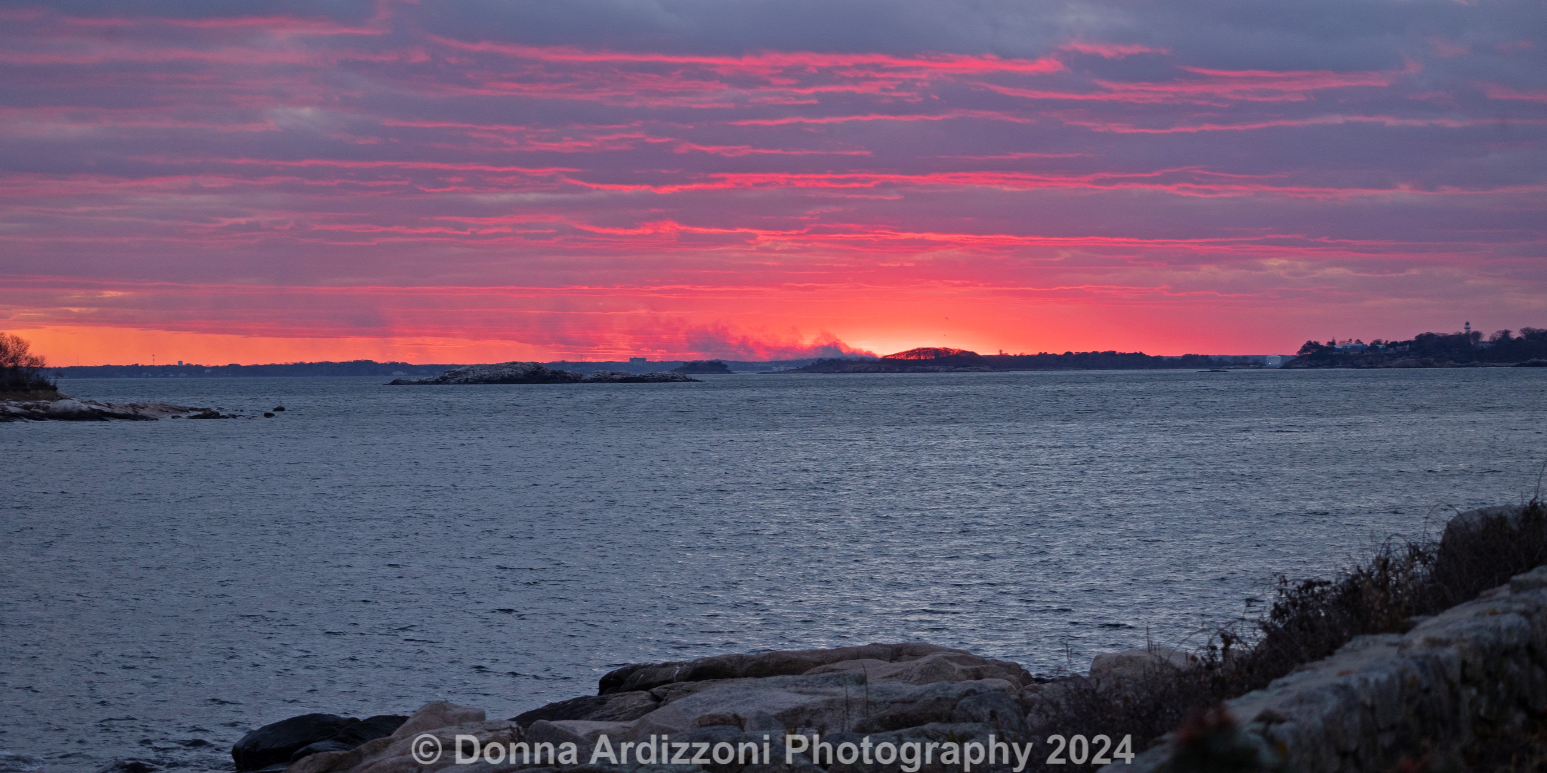 The sunsets in Magnolia at this time of the year are amazing. Facing south west gives the best colors in the winter. Shore Road has many of the same people walking and taking photos at sunset. We are called the Sunset club.
