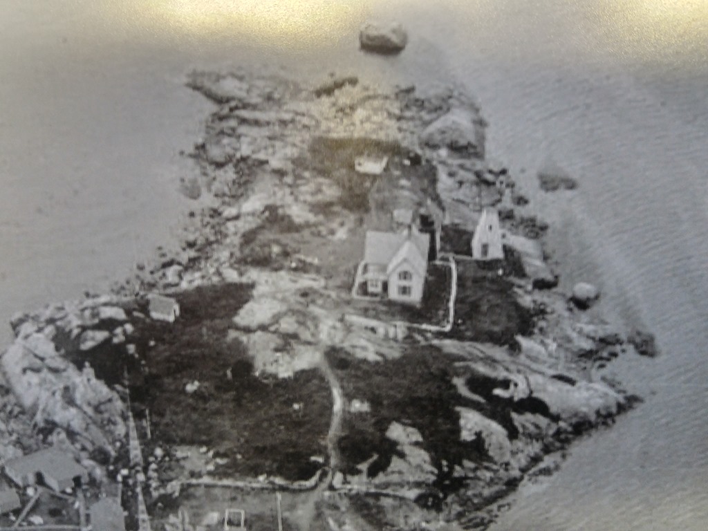 Israel Forster’s Grist Mill sat over Bennetts Brook on pilings. Manchester Harbor is behind it, with the town in the distance. Later, the mill was converted to produce furniture turnings (shaped parts of furniture, such as table legs).