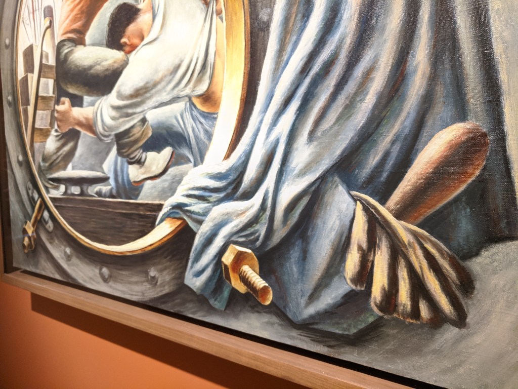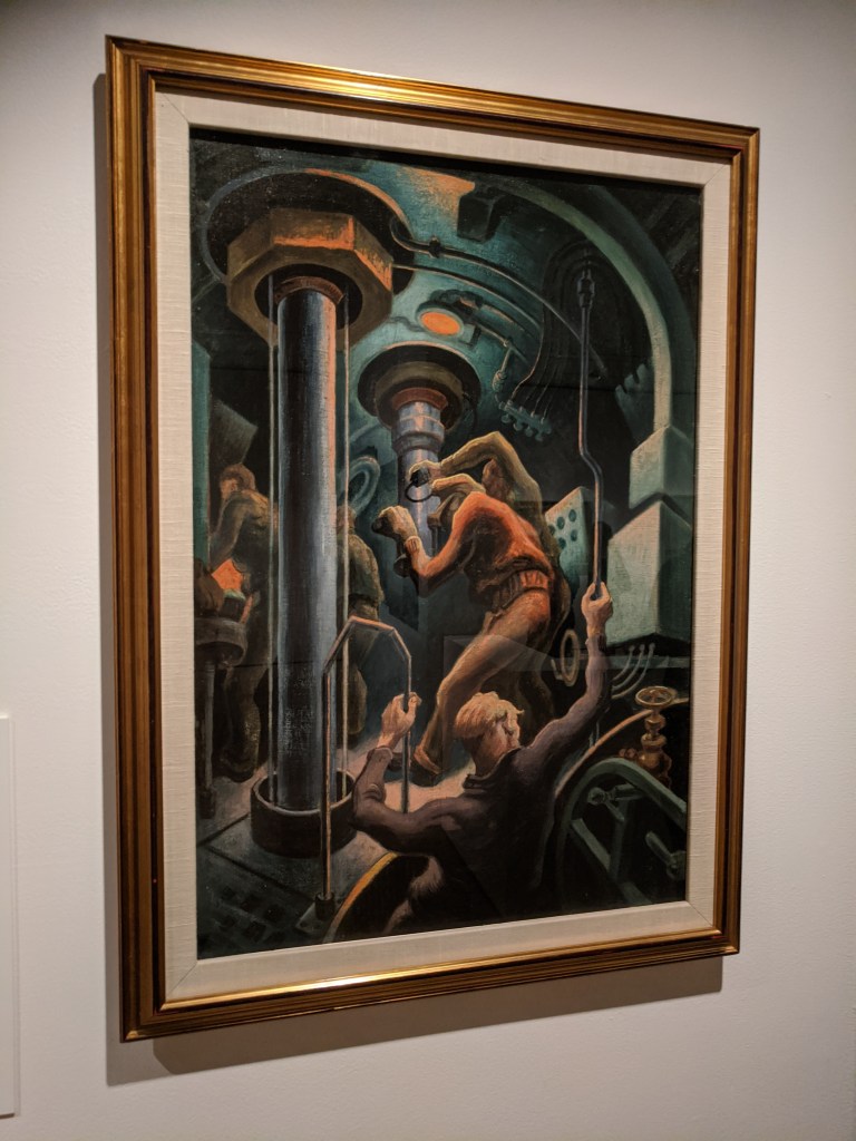 Anchors is jazzed up with witty pairs. The circle inventions are solid and light–wheels on a cart, parasols, poppies, proto pop inspiration for Thiebaud’s suckers decades later?–no matter. Analogues for Davis and viewers may not be the same, yet land a connection.