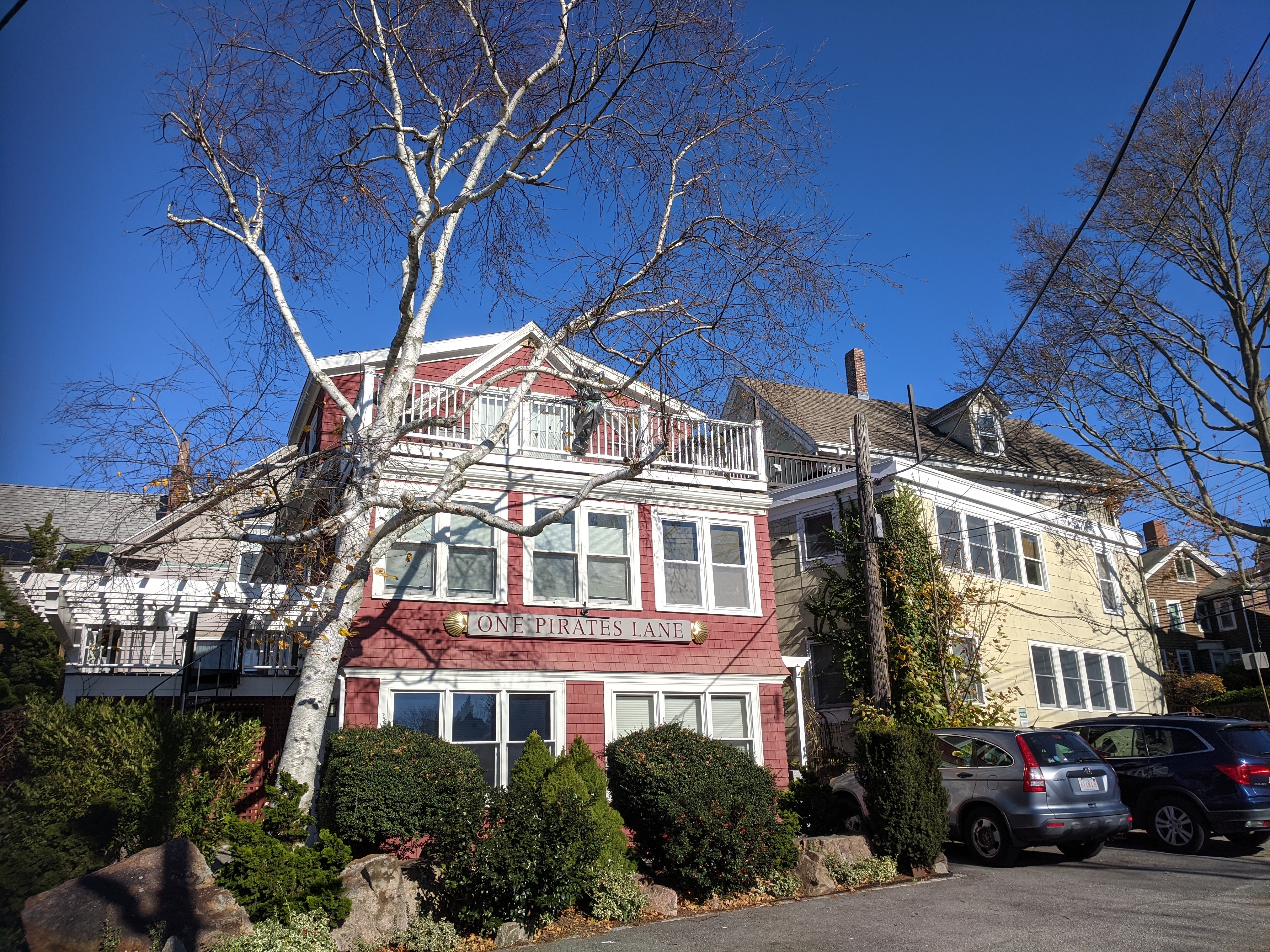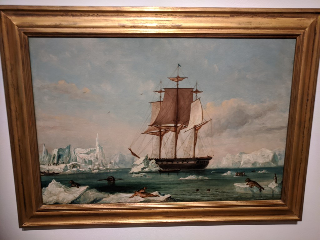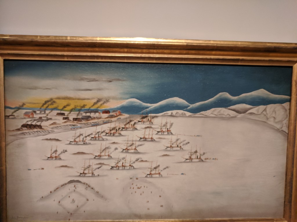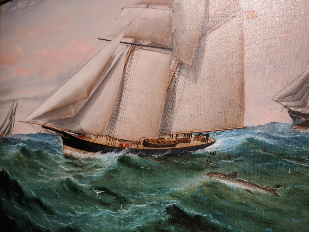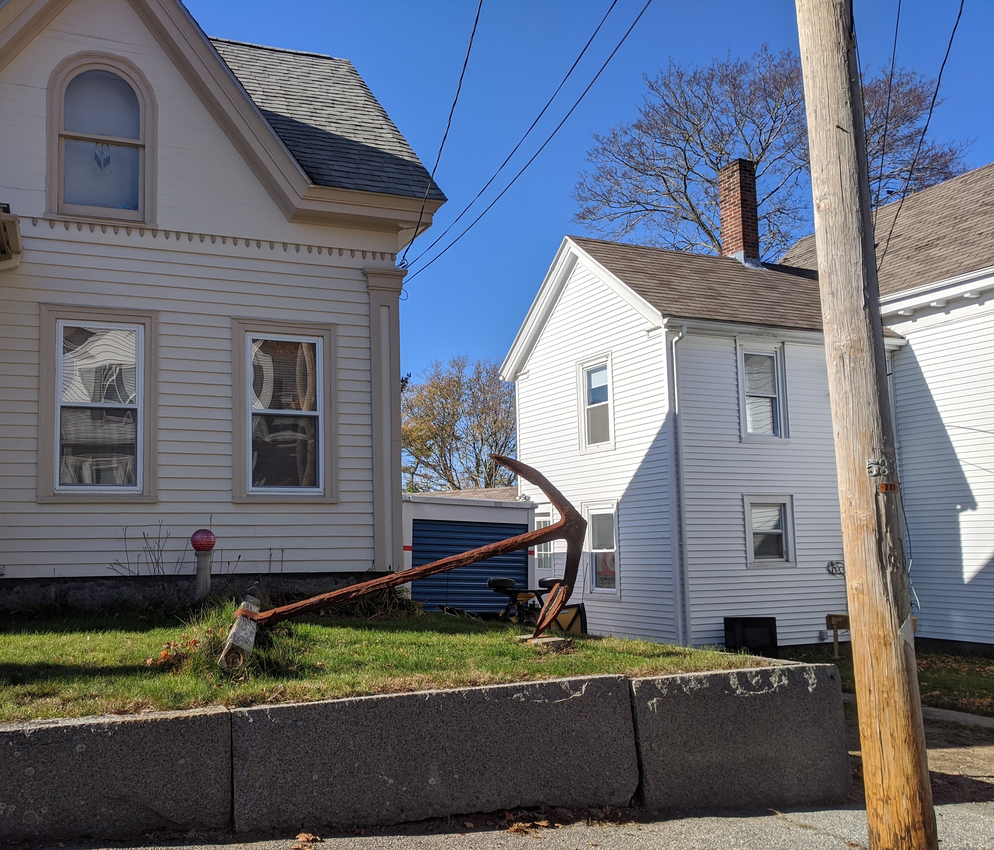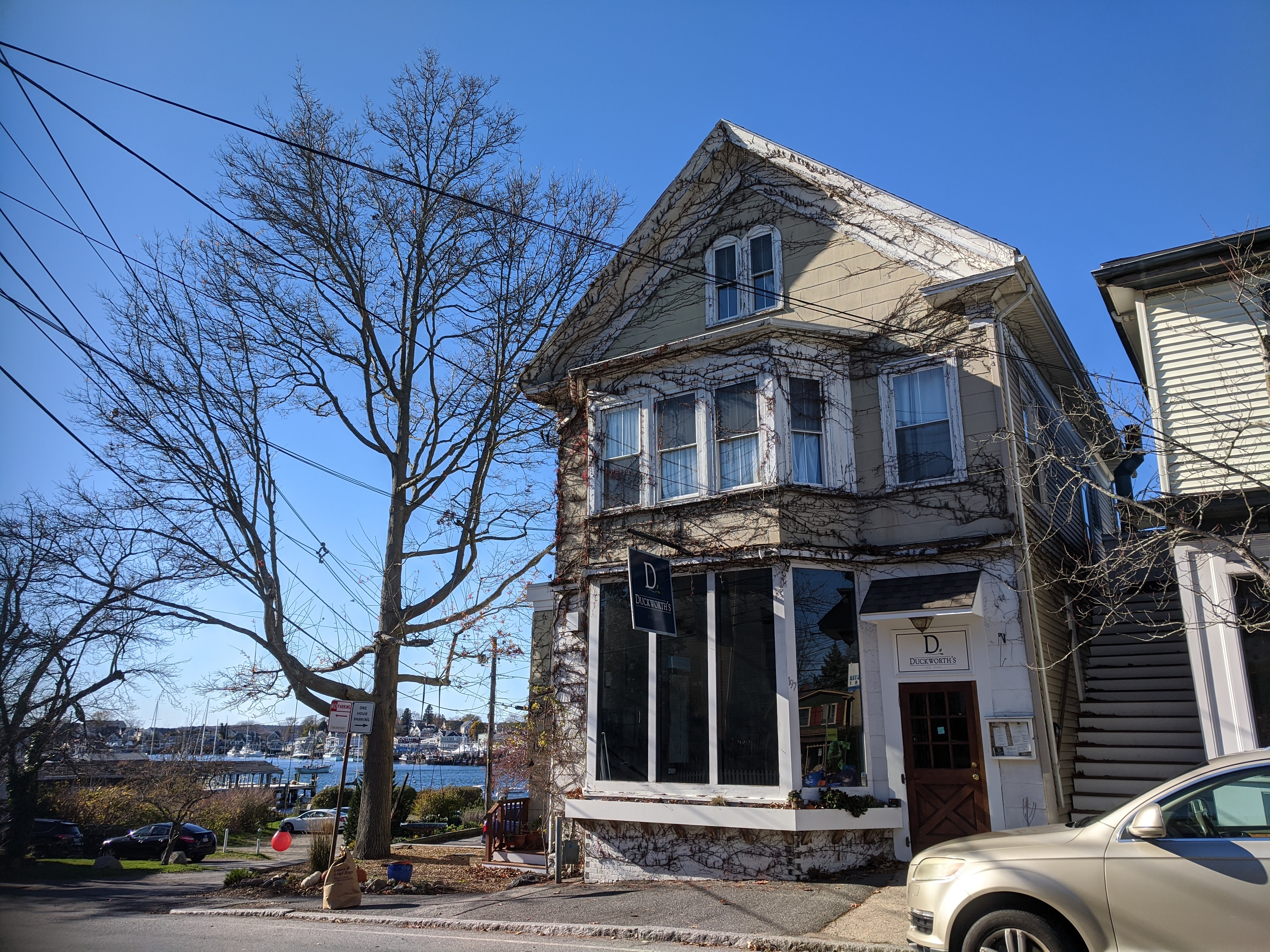 photos above: Private Way, 1915 (Gloucester=blue skies); The Morning Walk, ca.1919 collection Earl Davis; Boats, 1917, Philadelphia Mus. of Art; La Cressonnee ad circa 1914-1920s–which Davis spins in Rue Lipp ,1928; Anchors, 1930; anchor E. Glou. 2022; 51 Mt. Pleasant Ave; Reed’s Wharf; 192 E. Main – Duckworth’s