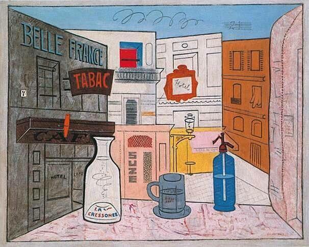 Davis felt Gloucester was the best locale on the Atlantic seaboard, and you can feel his devotion in the second Davis work for sale at this auction, Anchors, illustrated below, on the left, paired with an earlier Davis, Rue Lipp, 1928 on the right, for comparison.
