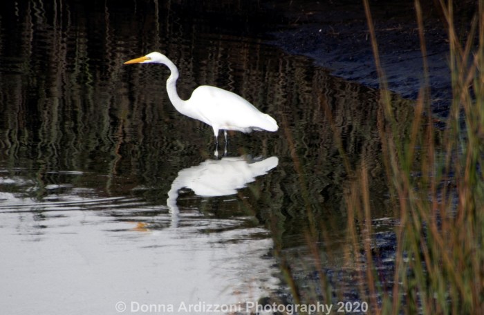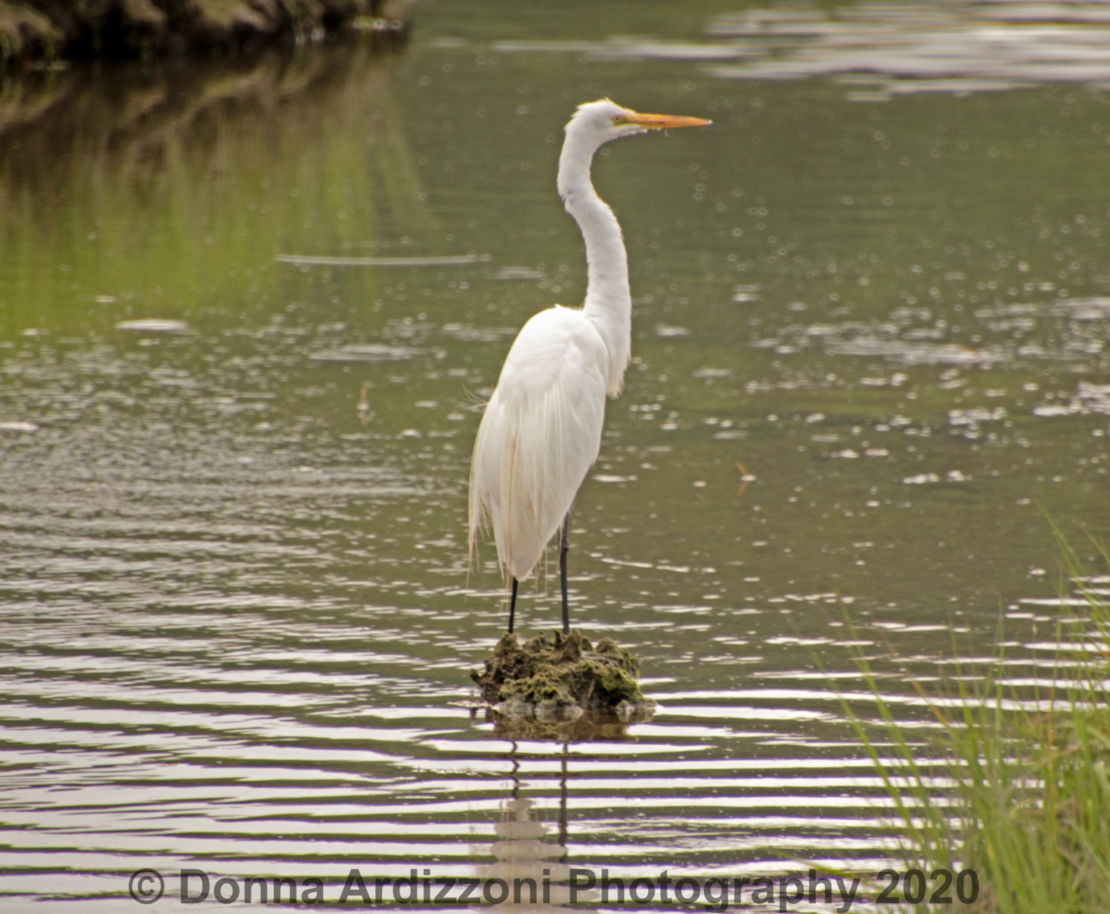 This egret was in the marsh near White Beach. The Great Egret is so pretty even in the rain.