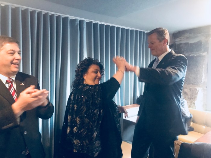 Mayor Sefatia welcomed Governor Baker, Lt. Governor Karen Polito, Schooner Bluenose II Captain Phil Watson and both Representative Ann Margaret Ferrante and State Senator Bruce Tarr were in attendance.