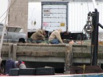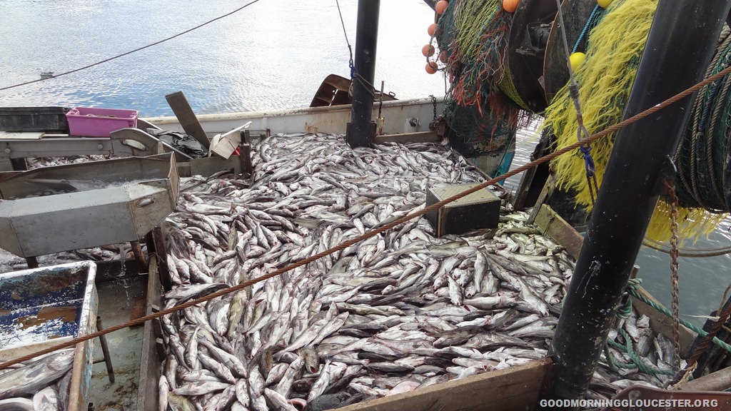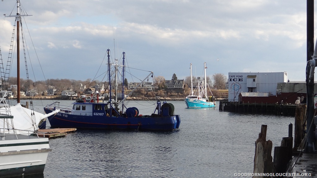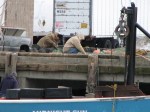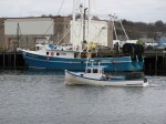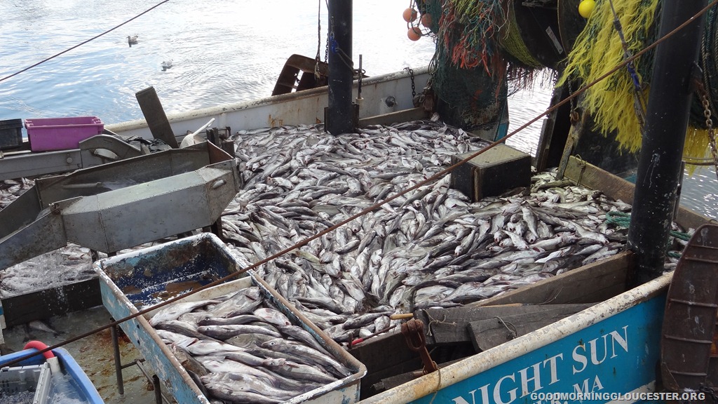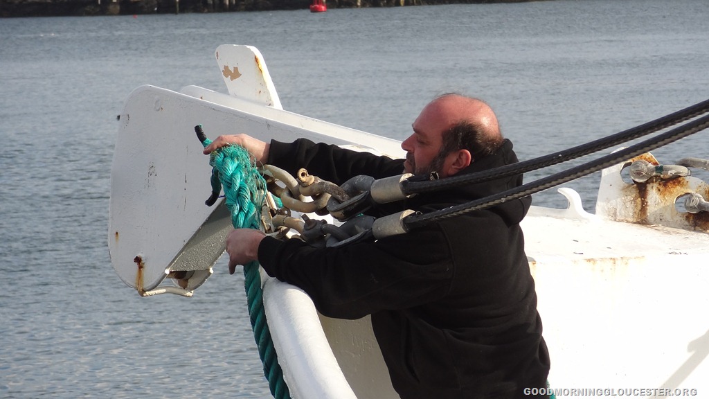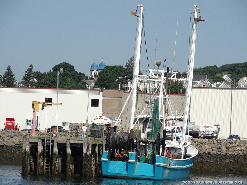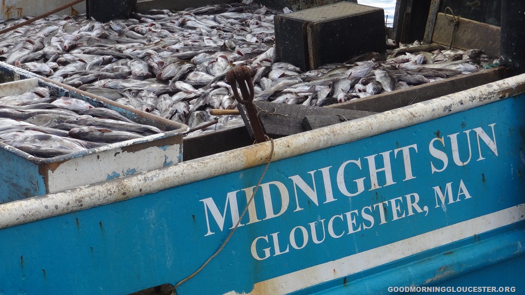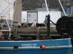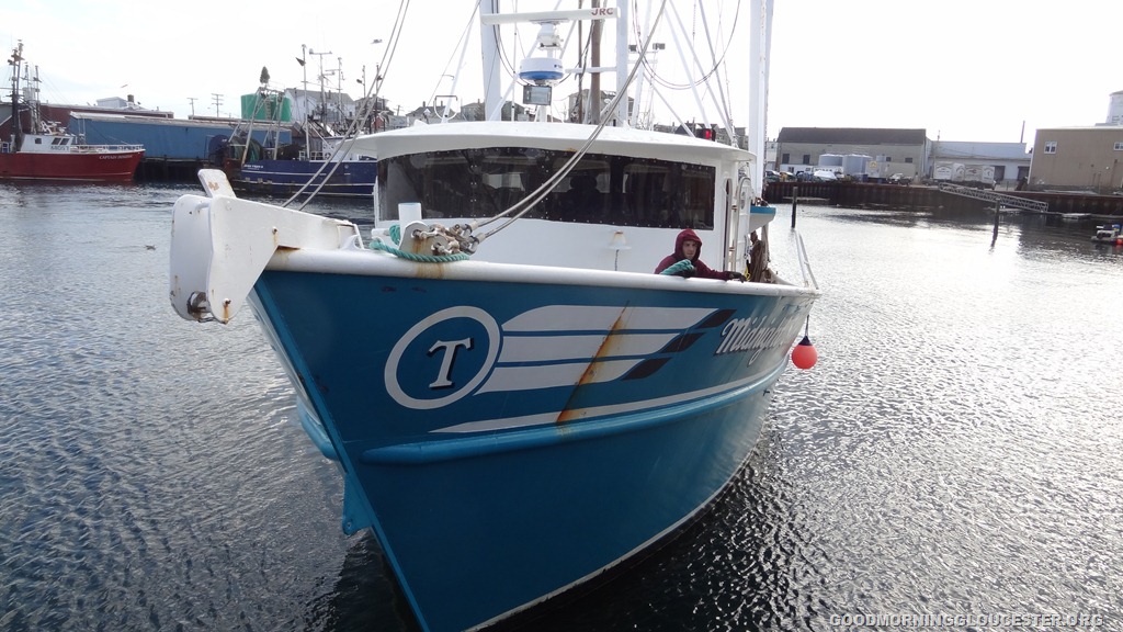Here is the Testaverde’s Midnight Sun tied up at The State Fish Pier. Note the tarp over the net. You’ll find out why you see draggers with their nets covered by tarps in an upcoming video clip.