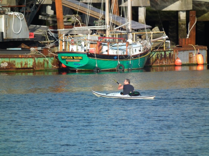 “The Yellow House: Van Gogh, Gauguin, and Nine Turbulent Weeks in Provence”(I may be as F’D Up as he was) this morning. I looked up and spotted a fast moving object heading my way. Man, those Seagulls can fly when they get a Tail Wind! Then out of the corner of my eye I spotted a very slow, sluggish and weighted down surface vessel. Oh, it was Paul Morrison in his new Surge Kayak hugging the State Fish Pier. what a Beautiful colored (not Paul’s beat red face) Kayak, Light blue top with white hull. Very Sleek! (again, not Paul Morrison).