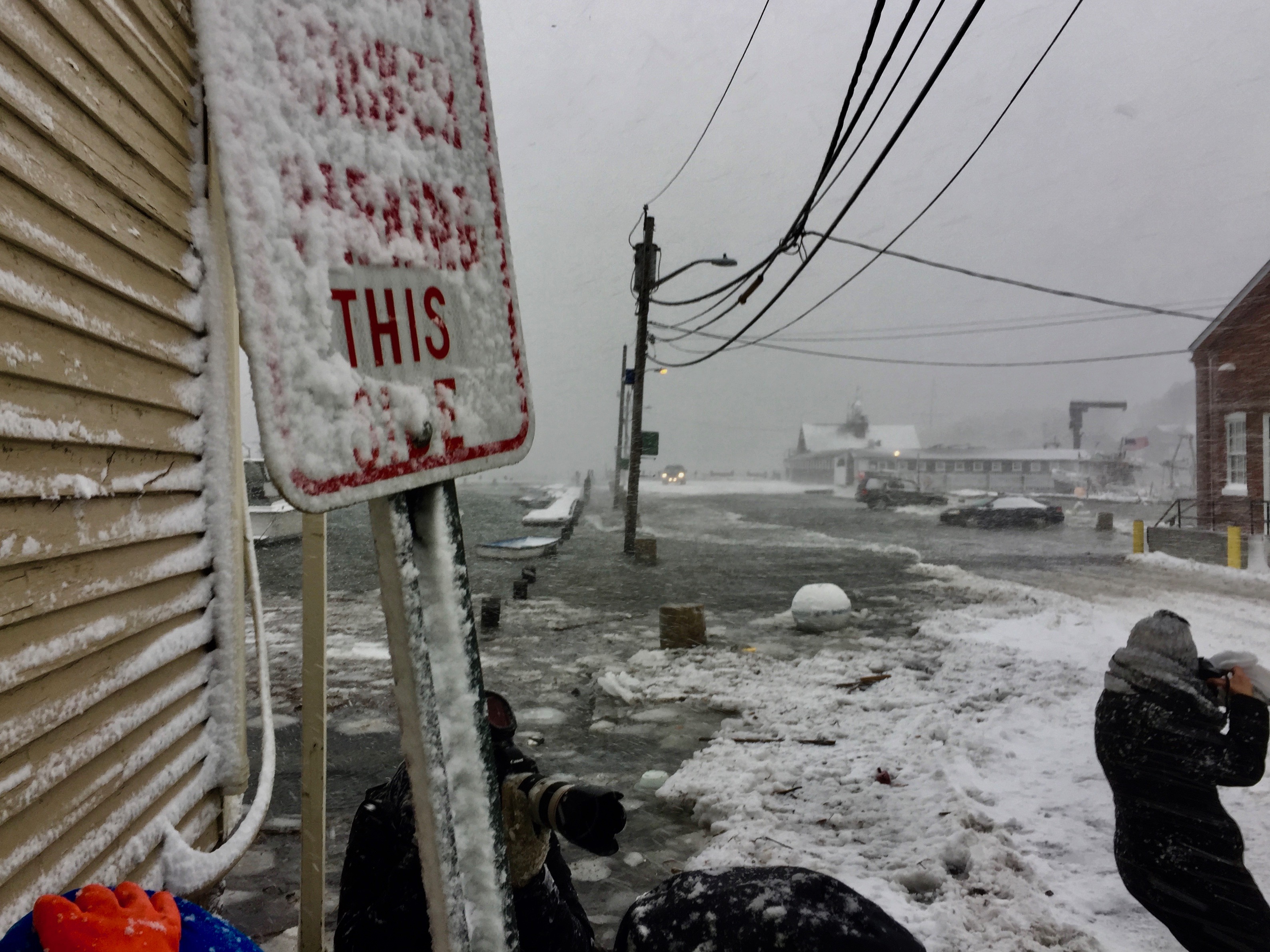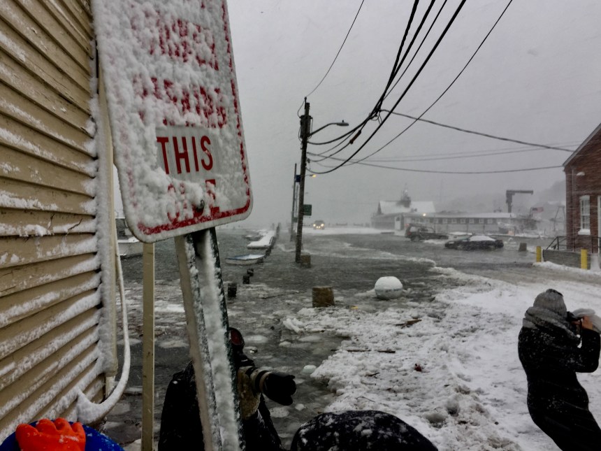 So this is high tide #RockportMA and winter shoveling WINDY after super snow moon