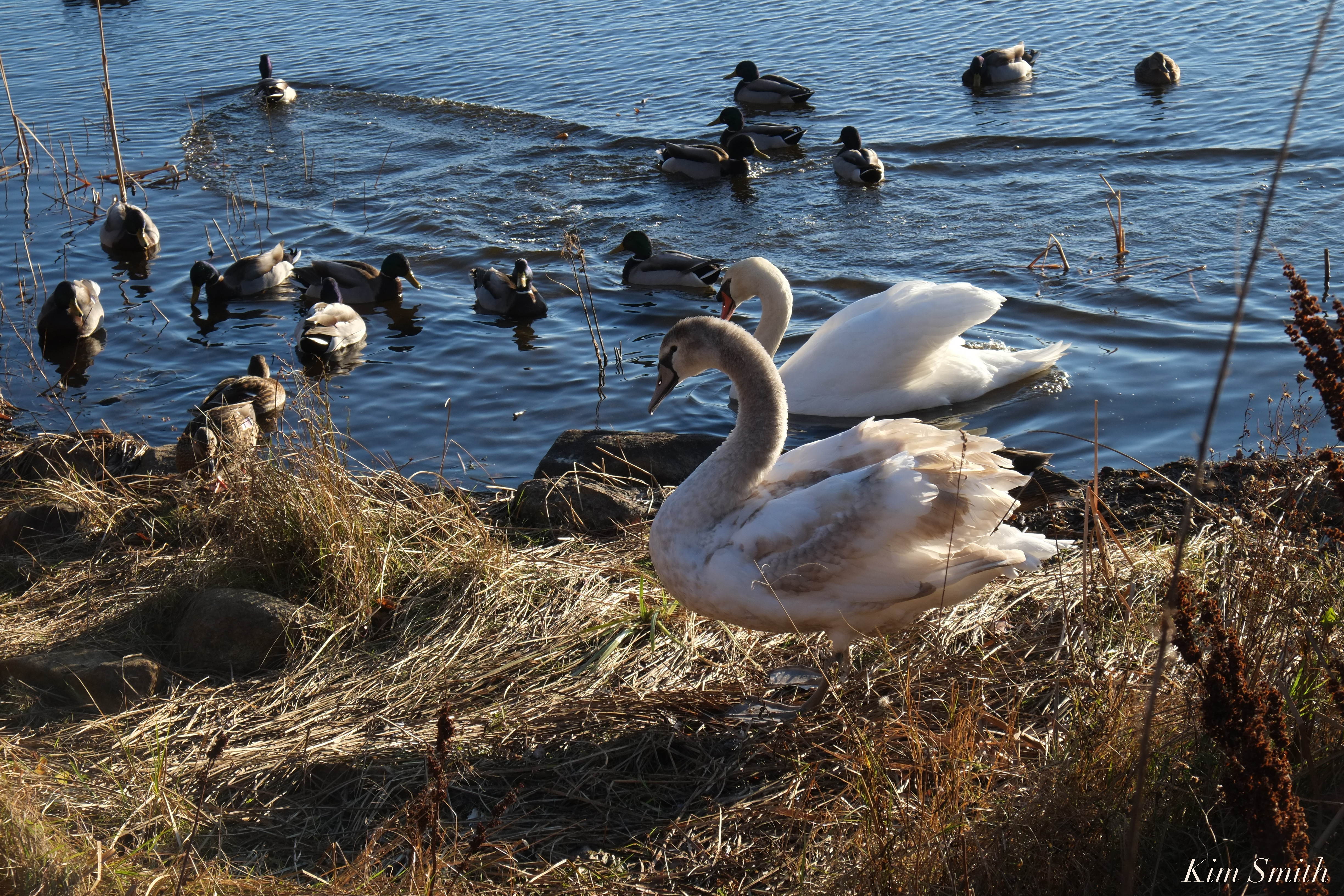 Lyn volunteered to take the Swan back to her swan sanctuary while a new home is identified. Very unfortunately, it was determined that the Young Swan be placed in the OCEAN. The Young Swan has never swam in, or for that matter even seen, the ocean, and he cannot fly well. The excuse was that Mass Wildlife rules state that if an animal is not visibly injured it has to be returned to the wild. However, our understanding is that Mass Wildlife guidelines do not pertain to non-native species and to pets. The Swan’s caretakers were begging to keep the swan safe and not dump him on the beach, repeating that the swan would be cared for, yet, despite their pleas, he was taken to Niles Beach and released there.