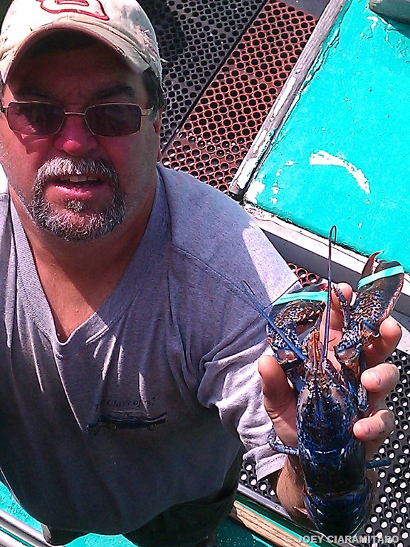I’ve been at the dock for 42 years. a long time. I’ve seen probably 6 blue lobsters in my time here but none as blue as the one brought in today and released.