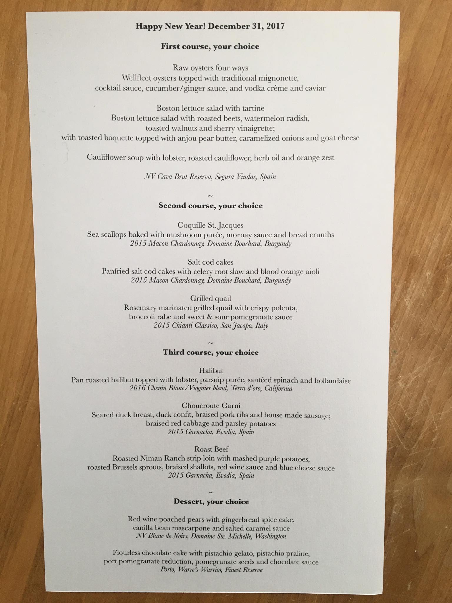 Unbelievably, several folks have cancelled their reservations for tonight’s beautiful New Year’s Eve dinner. There are openings at both the 5:30 and 9:00 times. Chef Ken Duckworth and staff have prepared a most elegant and delicious menu for your New Year’s celebration. Call Duckworths asap if you would like to make a reservation at 978-282-4426.