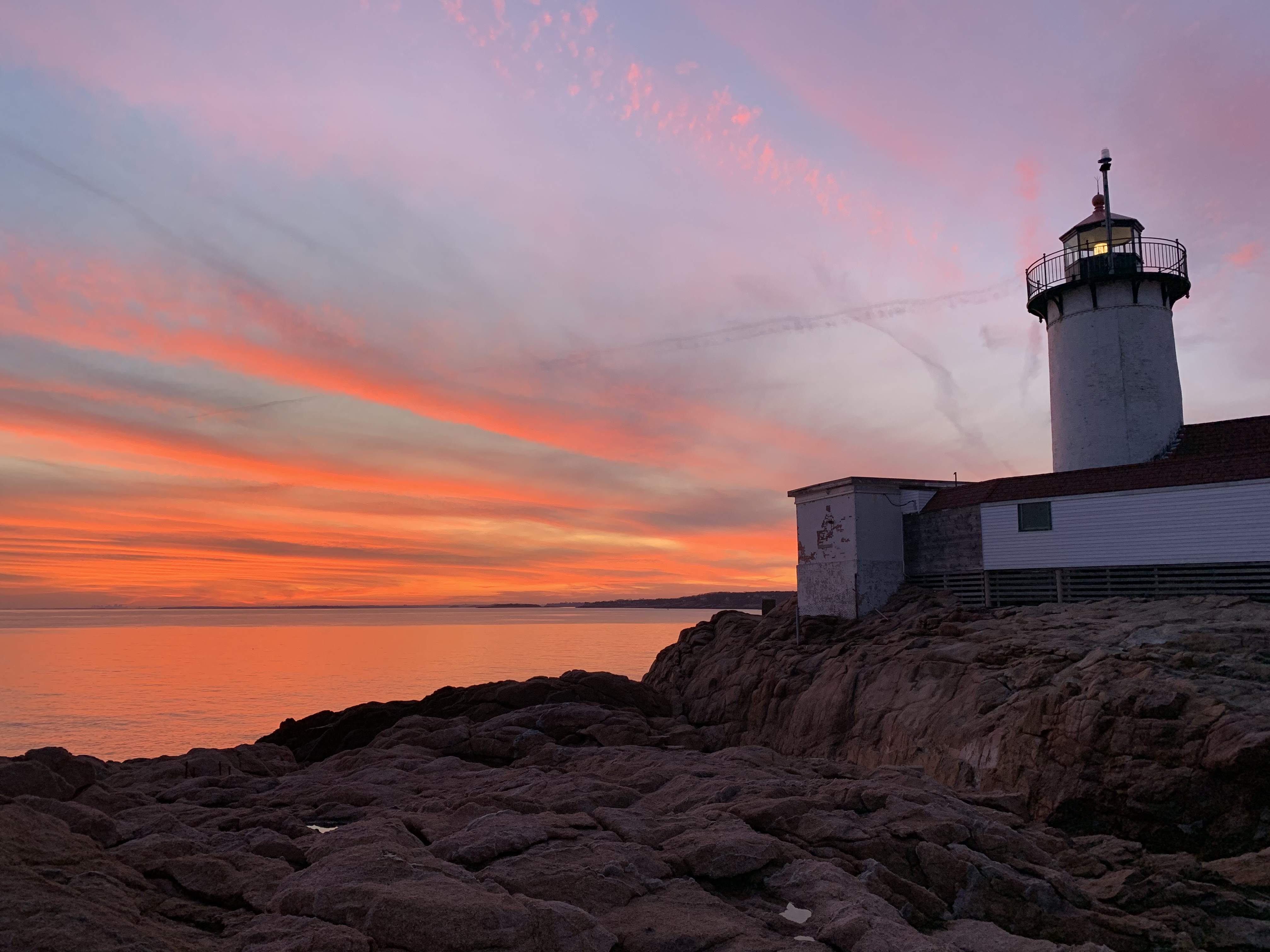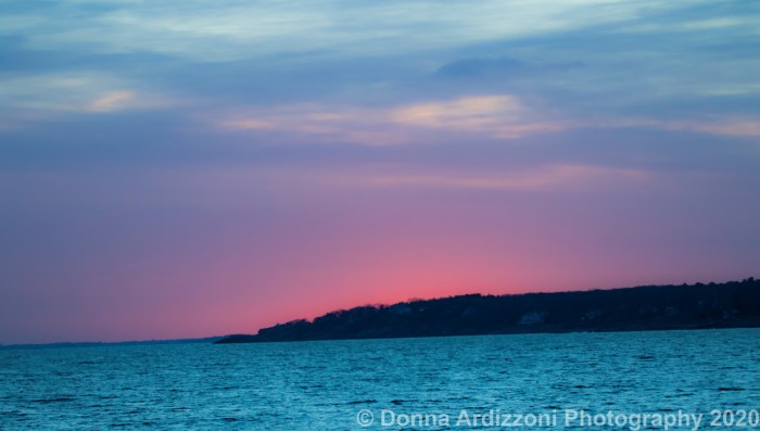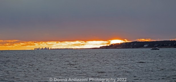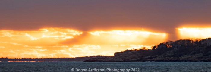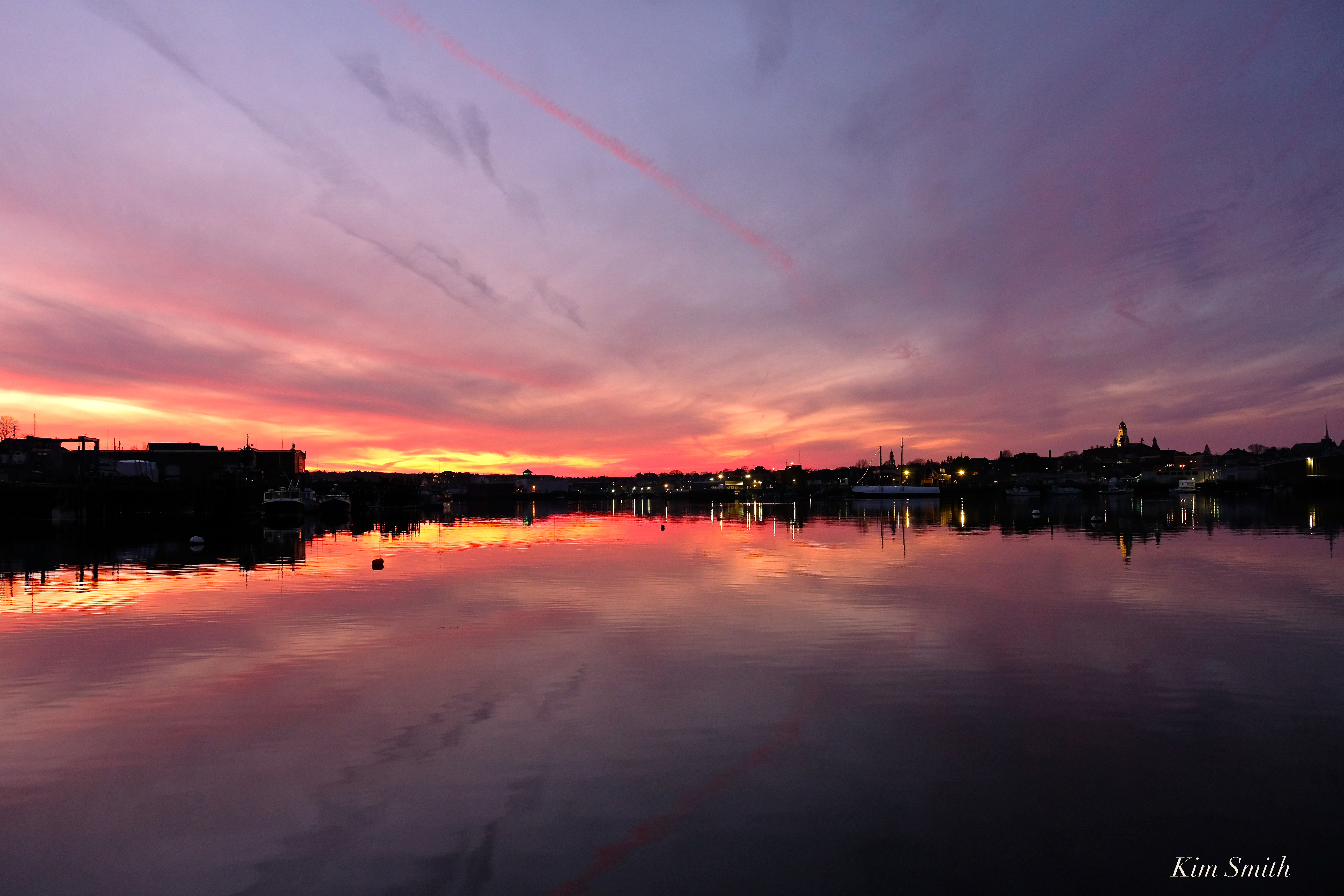 VIBRANT CHRISTMAS DAY SUNSET FROM GLOUCESTER HARBOR, EASTERN POINT, AND NILES BEACH