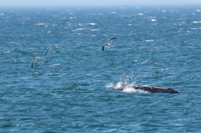 Boaters, kayakers, paddle-boarders, swimmers and light aircraft and drone pilots are reminded that it is illegal to approach a North Atlantic right within 500 yards (1500 feet) without a Federal Research Permit. However, the right whales often feed very close to shore, offering whale watchers on land unbeatable views of one of the rarest of the marine mammals.