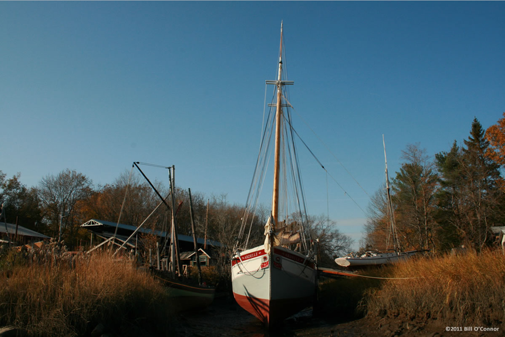 I was in Essex today and stopped by the Essex Shipbuilding Museum to take a few pictures and noticed the Ardelle at Harold Burnham’s on the low tide mud. Lewis H. Story was on her starboard.