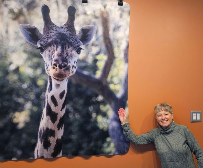 When Rick and I went to Disney in October it was so much fun. Of course, one of my favorites was staying right at Animal Kingdom. The animals roam around the preserve free and happy. We took a photo safari and saw so many wonderful animals. This giraffe, Maple, was one of my favorites. She came right up to the Safari truck and looked right at me. Took her photo and put this on a hanging blanket. Just love her face and her gentle spirit.