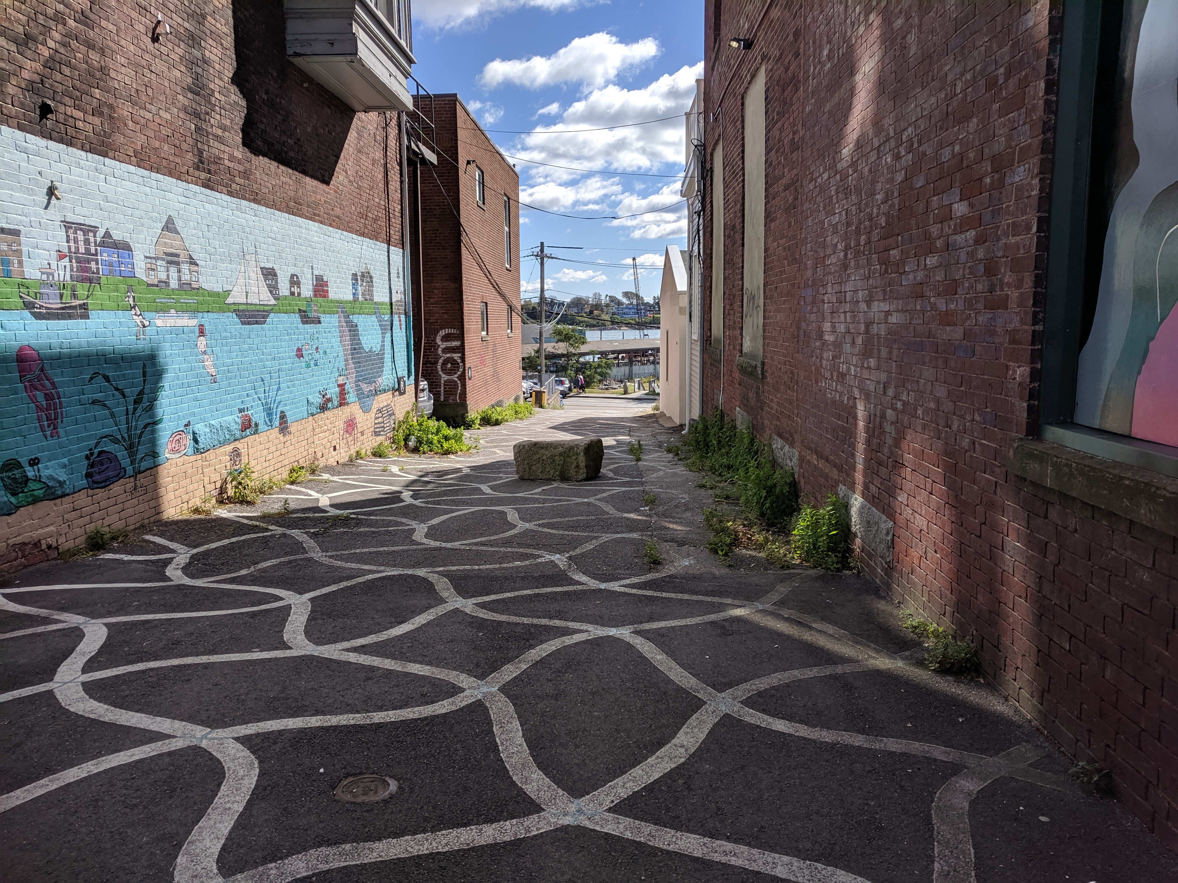 Next step underway – Gloucester DPW conveys that a textured surface for easier tread is being applied today. The pass through is a work in progress.