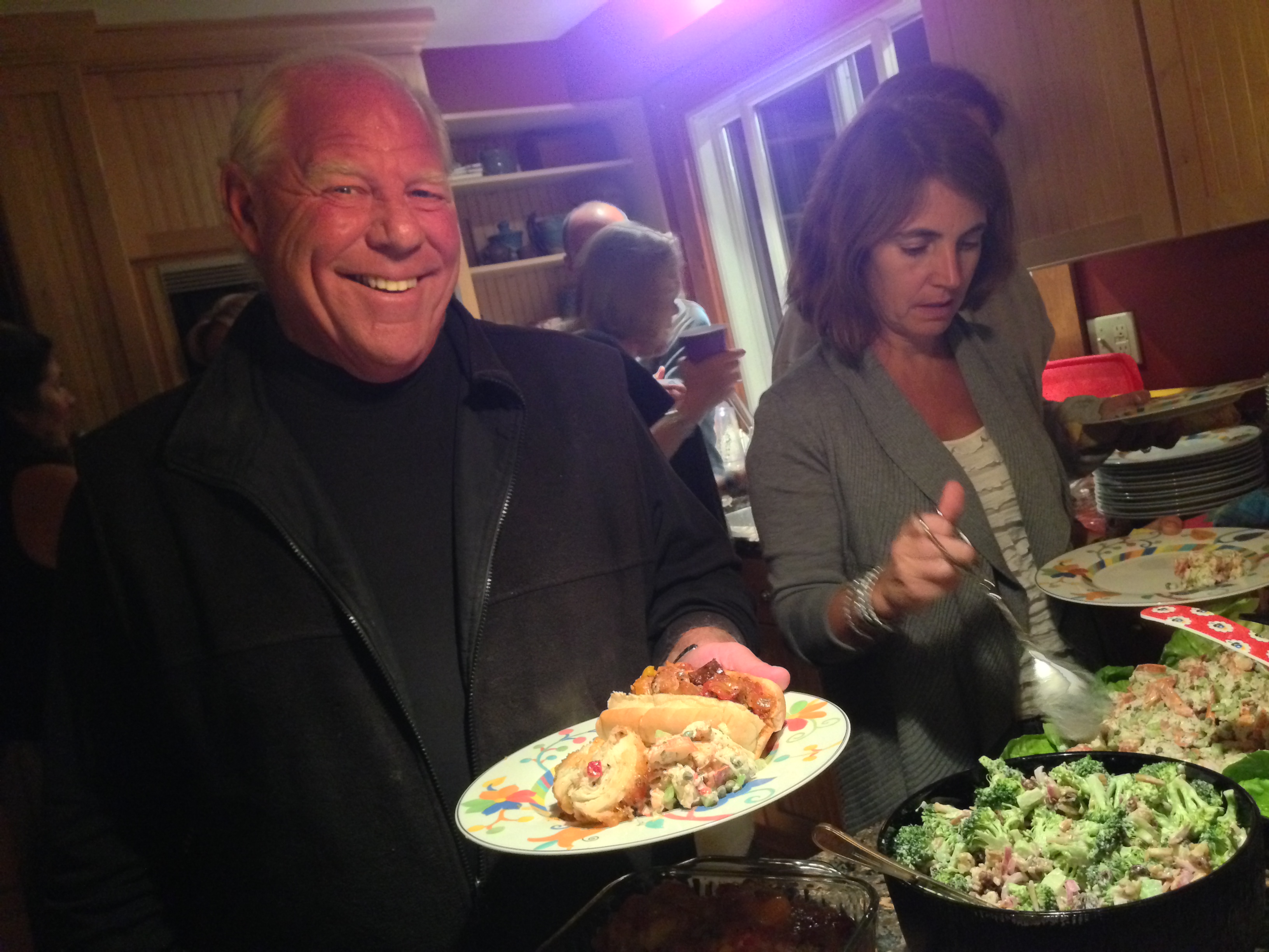Rabbi Steven Lewis gave a brief and very interesting “D’var Torah” – a commentary on the festival, based on the Torah and commentaries. (I used some of what he said in my homily at Mass the next day, giving due credit to the Rabbi, of course). The ceremonies ended with the lighting of everyone’s hanukiot (a.k.a. menorah) that they had brought from home, starting with the aforementioned historic one. Then we all ate latkes, jelly donuts, and other finger food!