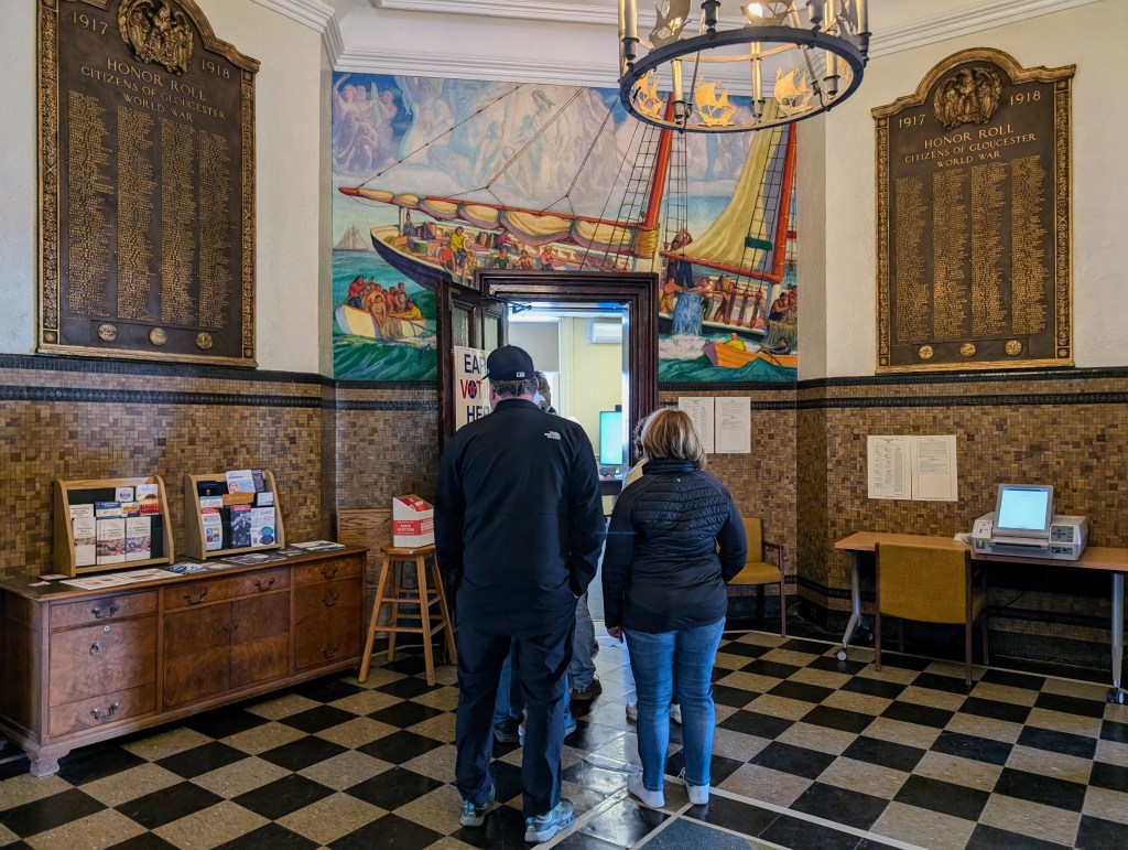Storms Rage, Gloucester Endures banners at the Cape Ann Museum.