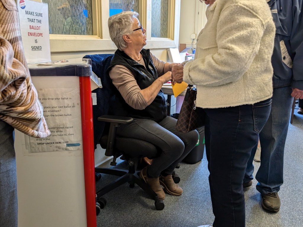 photo: Oct. 29, 2024. Residents line up to vote in City Hall. Grateful for volunteers and staff
