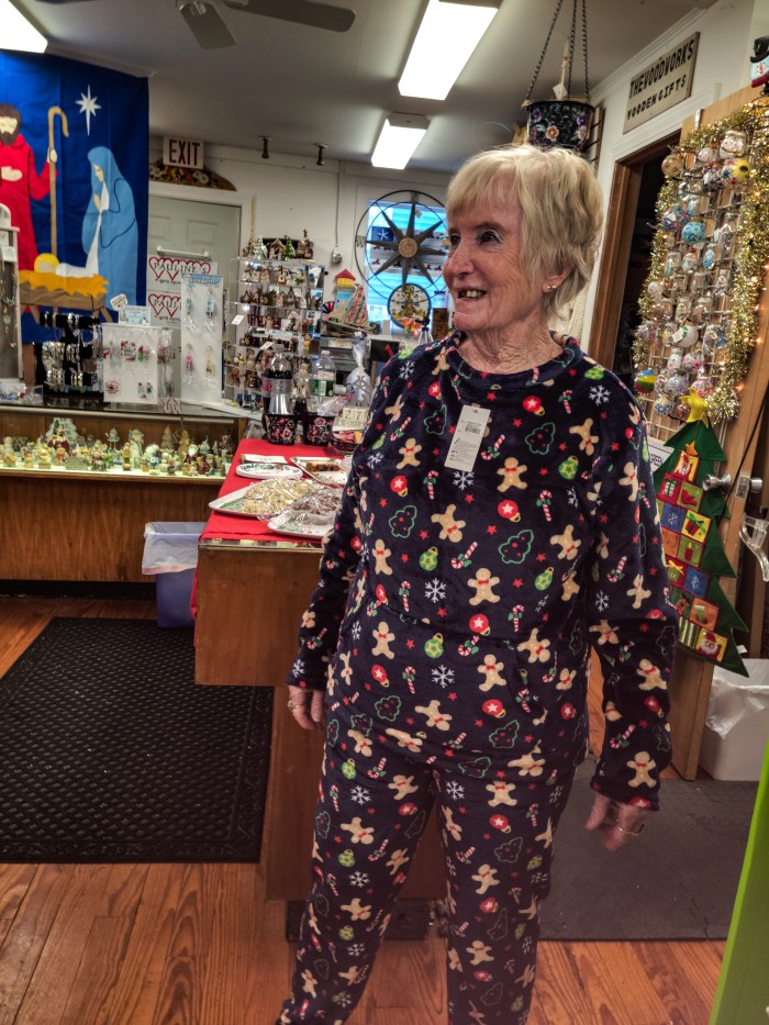 On Wednesday December 14, 2022, Pauline had a customer appreciation day. I went over to get some gifts and as always had fun and lots of laughs while shopping. When shopping in the store, a wonderful woman was there looking at the great Pajamas that Pauline sells. She tried them on and modeled them. This is why it we love shopping at Pauline’s Gifts at 512 Essex Avenue, Gloucester, MA.