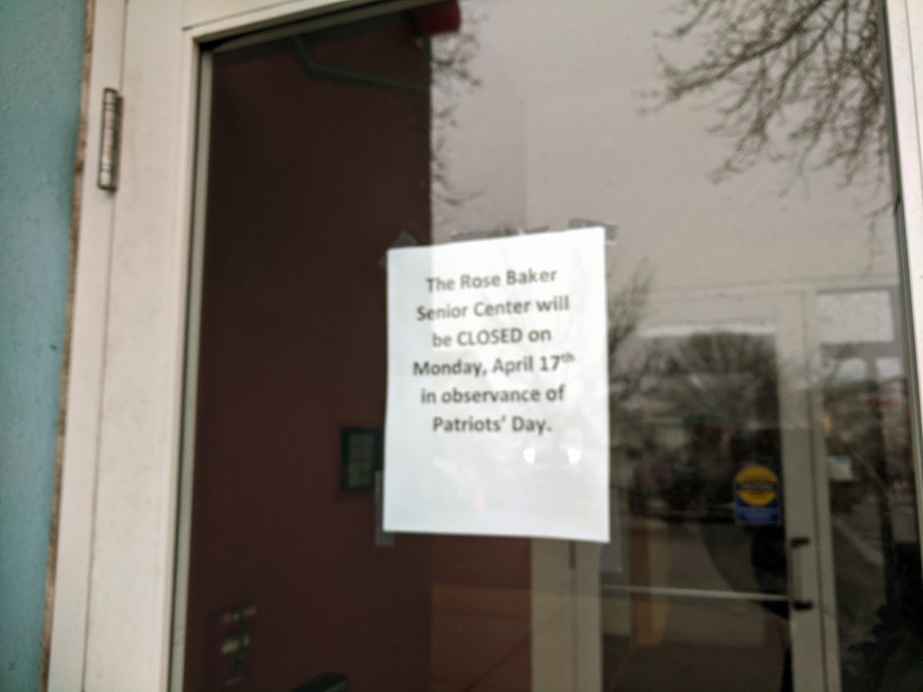 Rose Baker Senior Center closed Monday, April 17th, 2023 in observance of Patriot’s Day.