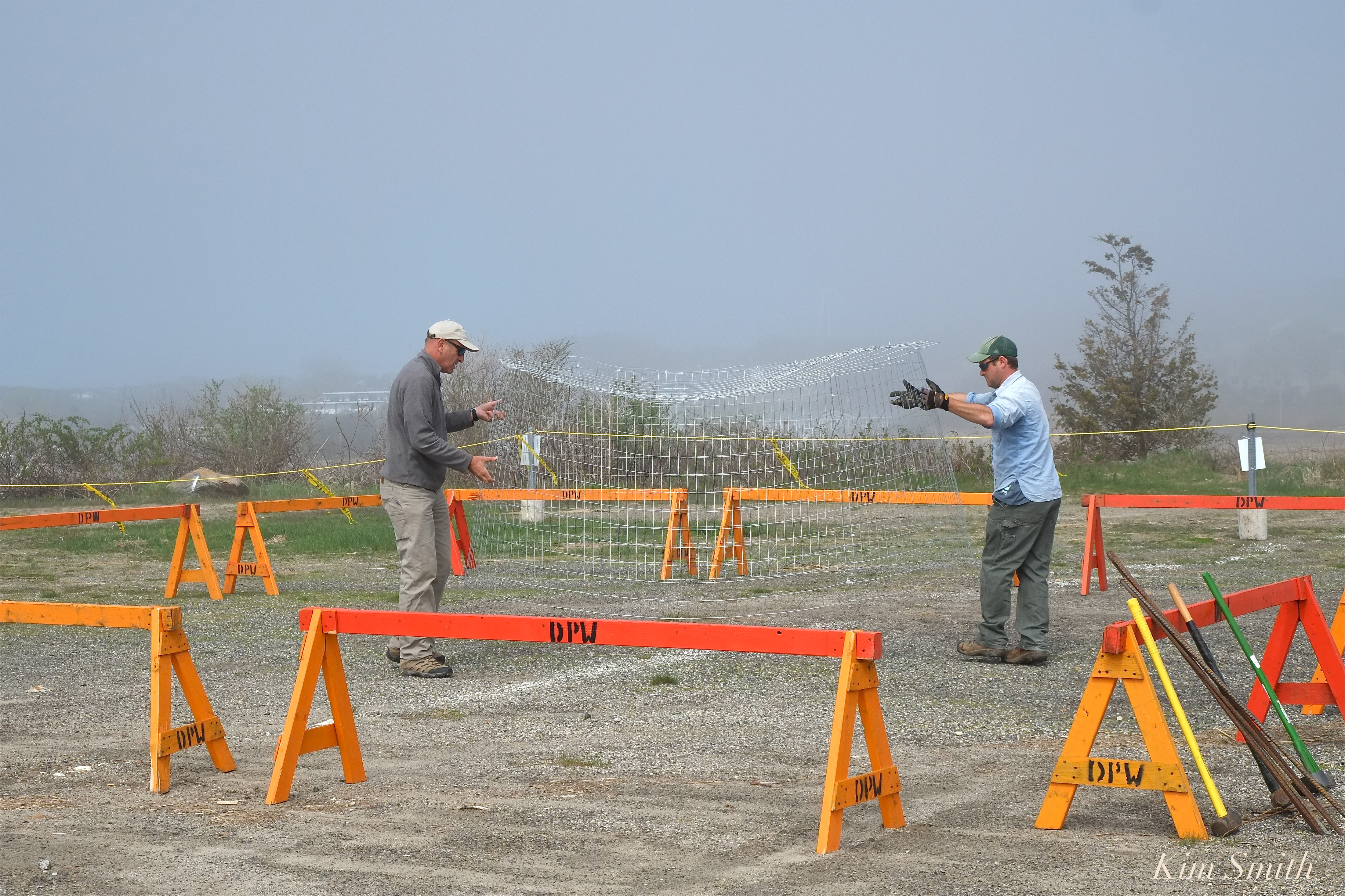 Essex Greenbelt’s Dave Rimmer and assistant installing the wire exclosure last year after the PiPls were driven off the beach by dogs–we don’t ever want to see this happen again.