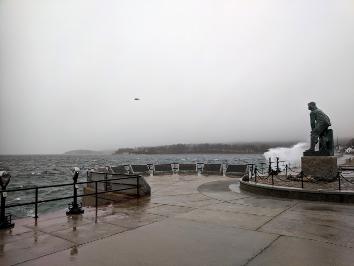 The sidewalk path is plowed, and the oceanside parallel path is nearly completed. Gloucester DPW says they’ll “have 6-8 Bobcats with snowplows running all weekend–city’s and city contractors.” I’m sure there’s still much to happen and clear. Still, isn’t it amazing how many roads are spic and span, and that trash pick up was just one day held off?