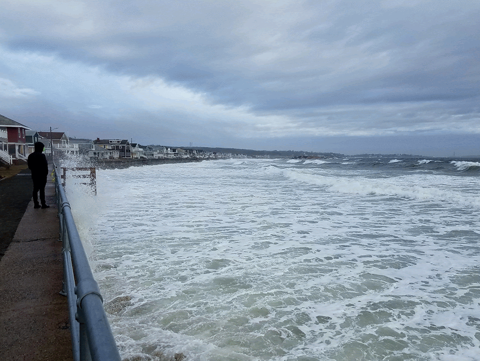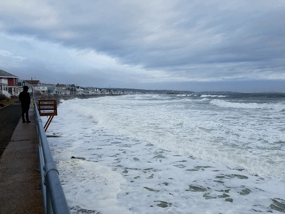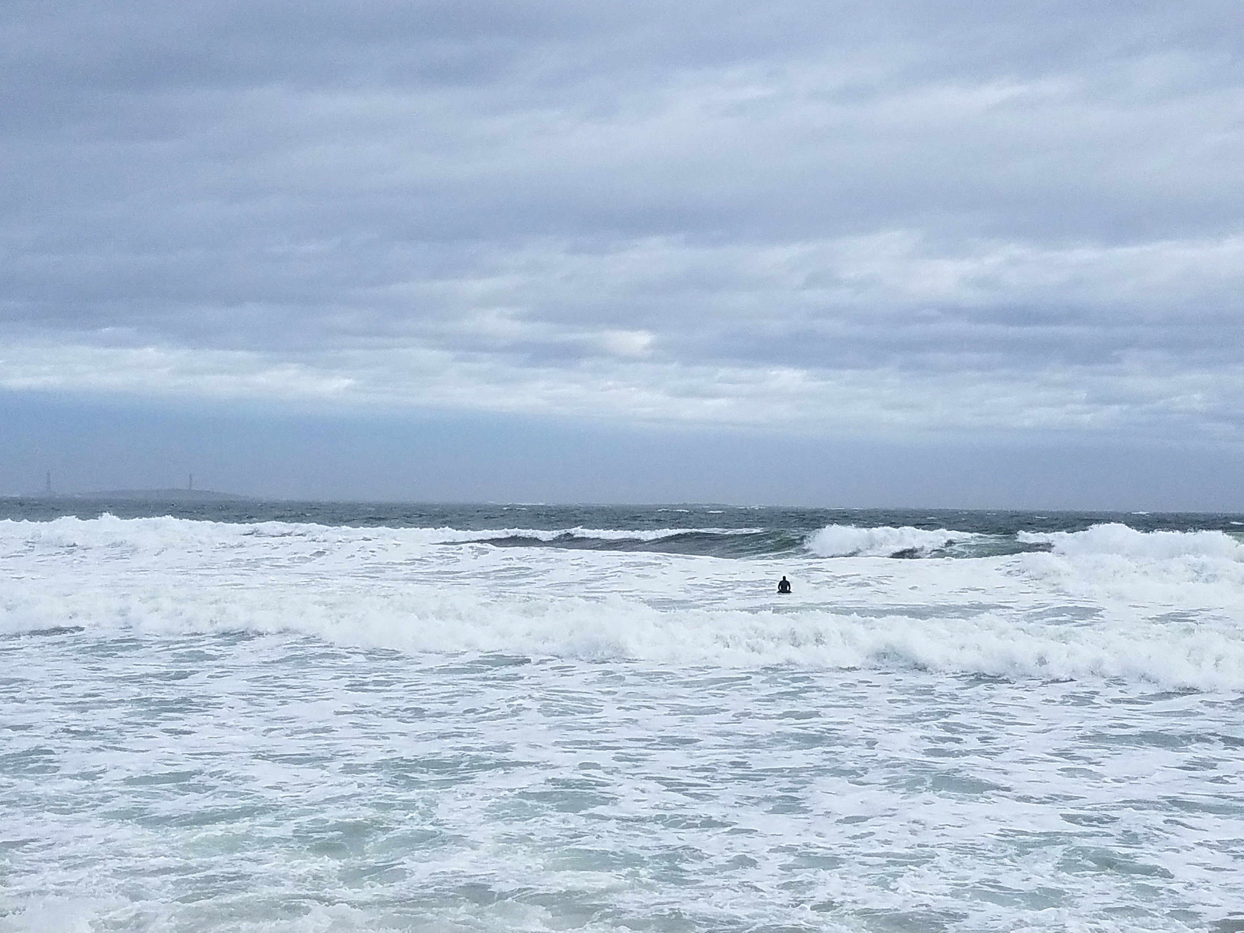 pinch and zoom or click through to enlarge photos- Light splash over along the walkway, sole surfer, wave watchers, and a few dog walkers.