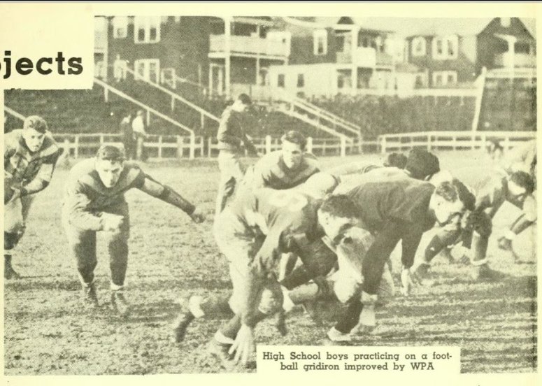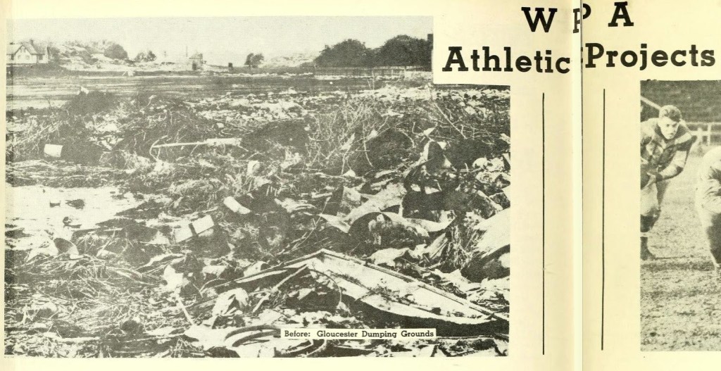 The WPA helped Gloucester finally cap off the new track and field on Centennial. For years Gloucester residents were asked to dump their trash to build up landfill. The recreation space (now New Balance Field at Newell Stadium) was recognized nationally and dubbed, “Gloucester WPA Centennial Avenue Athletic Field”.