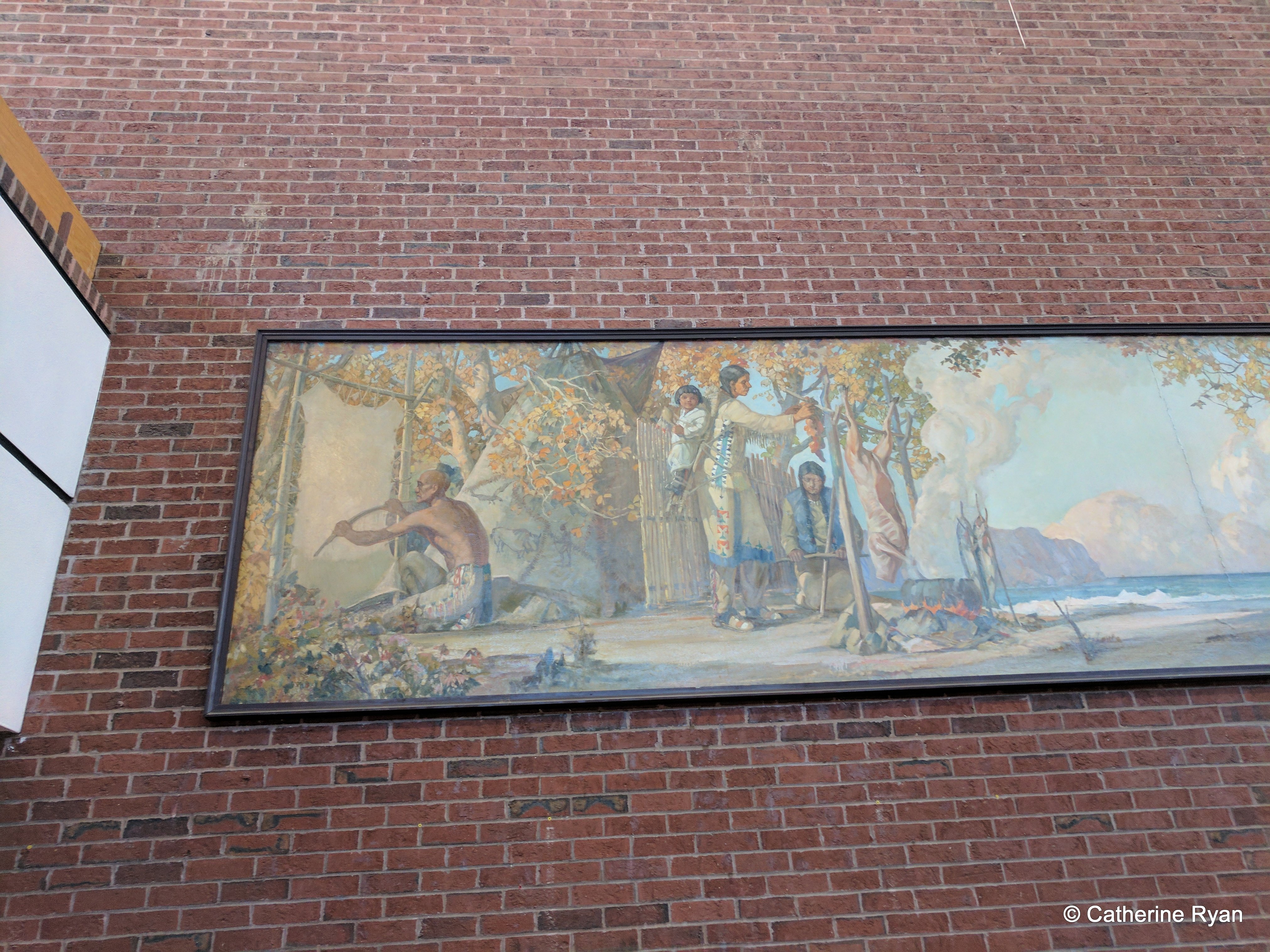Within City Hall, there are 10 monumental New Deal murals by four artists: Charles Allan Winter, Frederick Stoddard, Frederick Mulhaupt, and Oscar Anderson. Three are multi panels so the collection in this building seems much greater than 10 murals. The Winters in the lobby and Kyrouz were site-specific for City Hall.