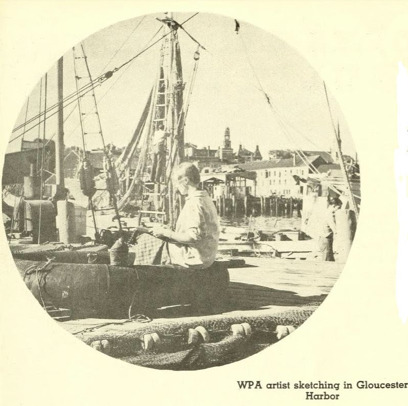 The City of Gloucester artists were significant muralists and painters. In truth, venerated. They captured stories of Gloucester and became a celebrated part of our history and artistry. When considered as a whole, the Gloucester murals rival WPA era collections completed in big cities. The density of murals are as concentrated as any found in larger cities, like Coit Tower in San Francisco, though spread out among buildings rather than one tower, or one structure, as with Harlem Hospital.