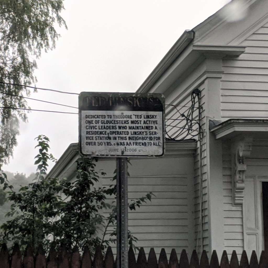 The Winslow Homer marker on the corner of Dale Ave & Main for Gloucester’s HarborWalk features Breezing Up (A Fair Wind) thanks to permission from the National Gallery of Art.