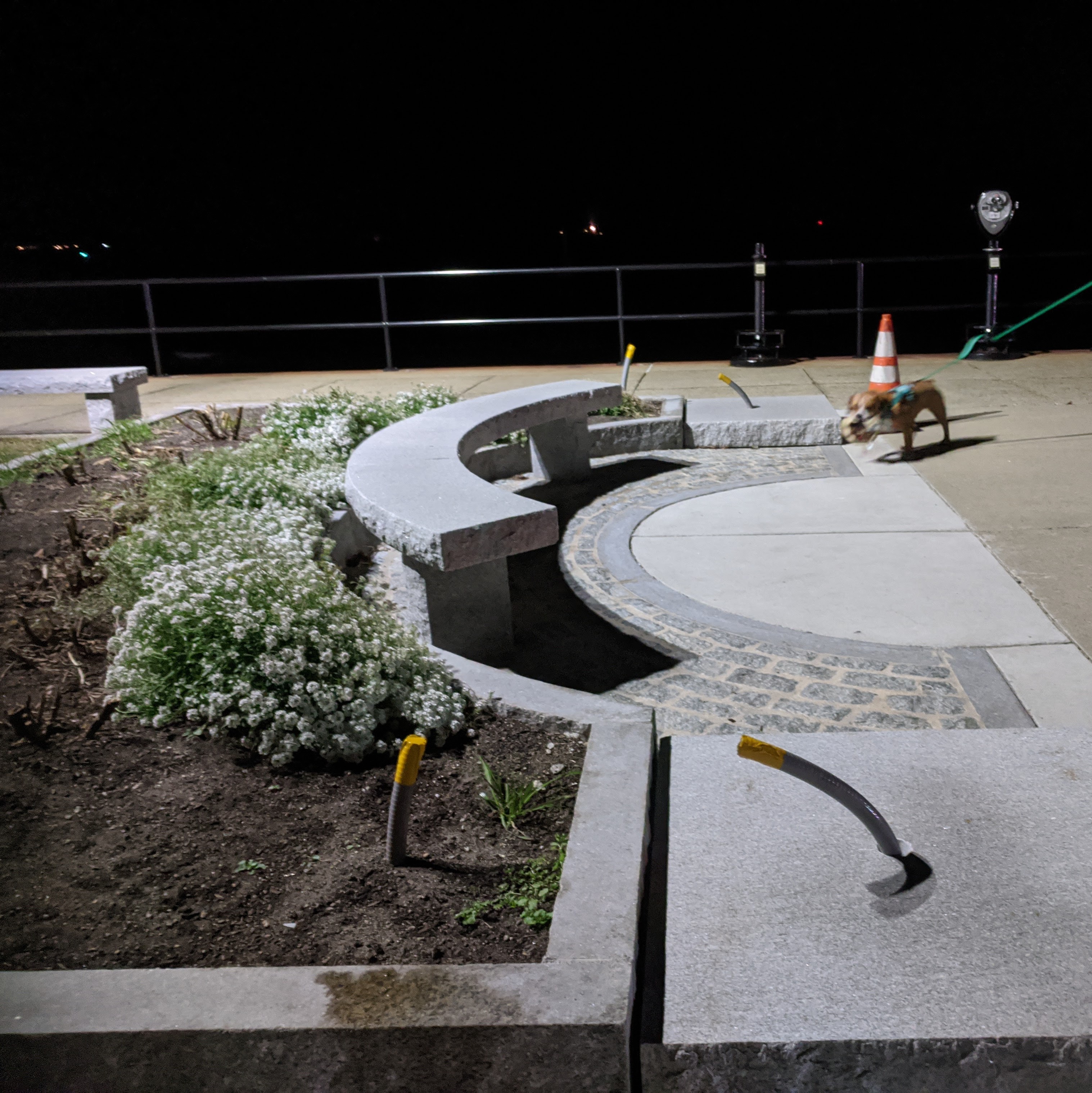 Bases readied for Stacy Boulevard Chris Williams public art & commission, four bronze planters, a 400+ Legacy Project, led by Generous Gardeners for Stacy Boulevard landscape design by Ann Gilardi Johnson. Save the date: Saturday December 9, 2023, 3pm