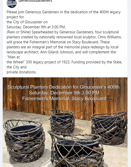 Money was raised to address the plaque and patination (some had preference for a brown finish) Gloucester Daily Times, 2016, and then that project was paused. As far as I know, funds were not returned nor redirected for restoration of the city’s art deemed in distress. At the time William Taylor addressed the verdigris: