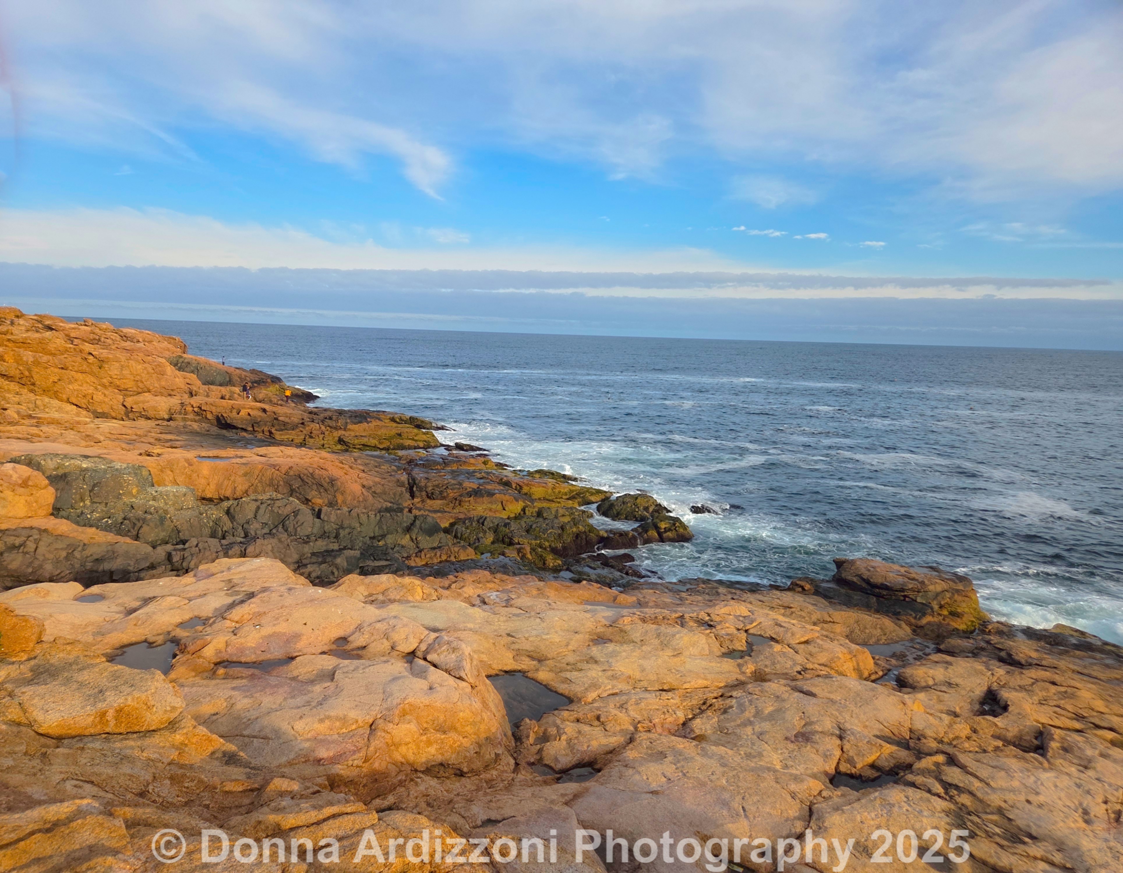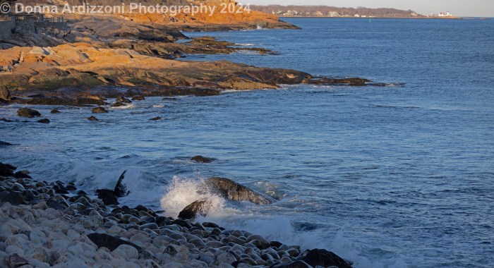 Since we live in Magnolia Village of Gloucester, walking to Rafe’s Chasm is another blessing. The woods open up to a beautiful ocean view.