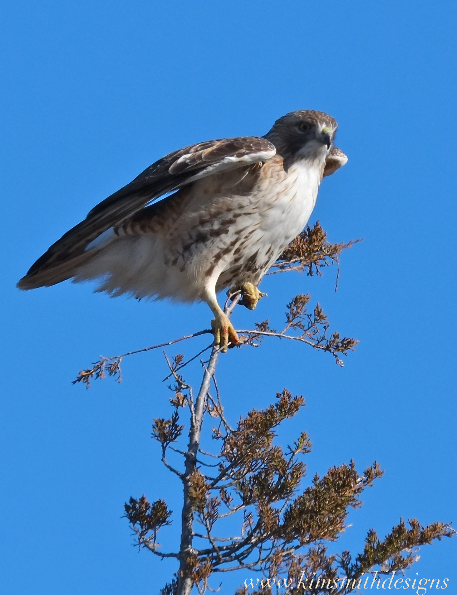 Red-tailed hawks are extraordinarily adept hunters and highly variable in their diet. Eighty percent of the Hawk’s prey is comprised of mammals. For example, mice, voles, squirrels, chipmunks, rats, and rabbits. Records indicate that they also eat songbirds, pigeons, shorebirds, and unbelievably so, female Wild Turkeys and pheasants. Now we can add Great Cormorant to the list. Red-tailed Hawks weigh approximately between 1.5 pounds to 3.2 pounds, female Wild Turkeys average 9 to 10 pounds, and Great Cormorants weigh 5 to 8 pounds.