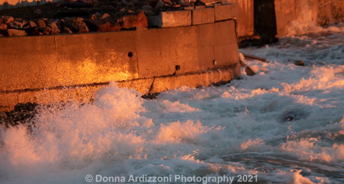 Beautiful reflections on a sea wall