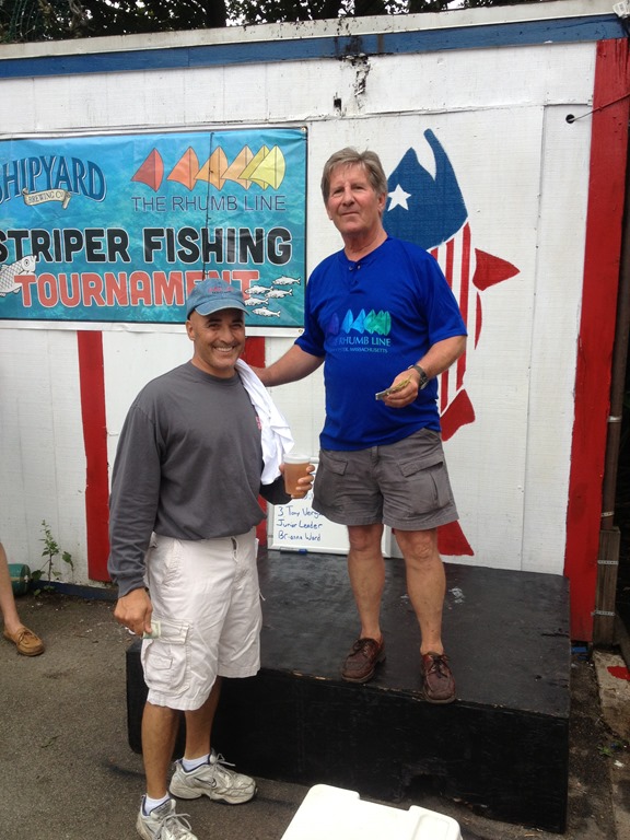 The Rhumbline Striper tournament was a hit as usual. There were 76 individuals that entered and attached are a few photos of the first and second place finishers and their fish. I have also attached photos of the third place and junior winner for the tournament receiving their prizes.