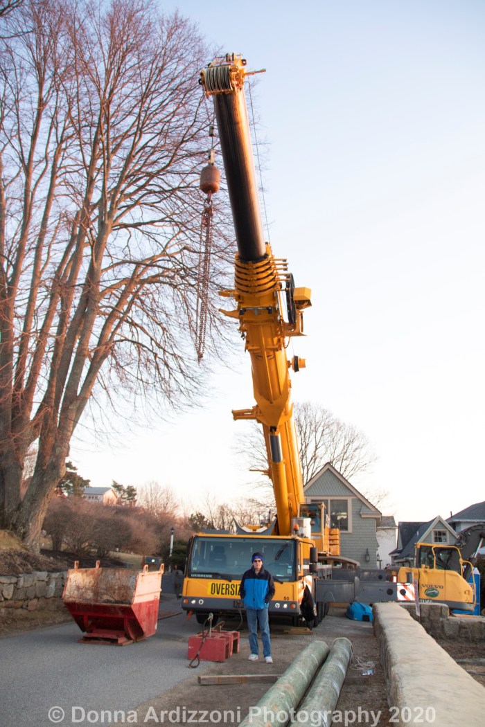 Ricky is 6 feet but standing next to the crane give a prospective of the size of this piece of machinery. The pier is coming along.