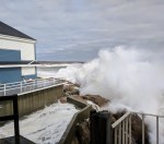 The best wave watching Sunday afternoon was from Atlantic Road, especially when the light turned silver-gray-violet. The mist from the pounding waves filled the air, creating a beautiful diffused quality. It was mesmerizing to see the waves hurling against the rocky coastline. Often the force was so loud, it sounded like a sonic boom had exploded. Atlantic Road was closed to car traffic while pedestrians strolled the road as though a promenade. After watching the full force of the waves during high tide, I headed over to Straitsmouth Island in Rockport. Less in strength, but still spectacular to watch.